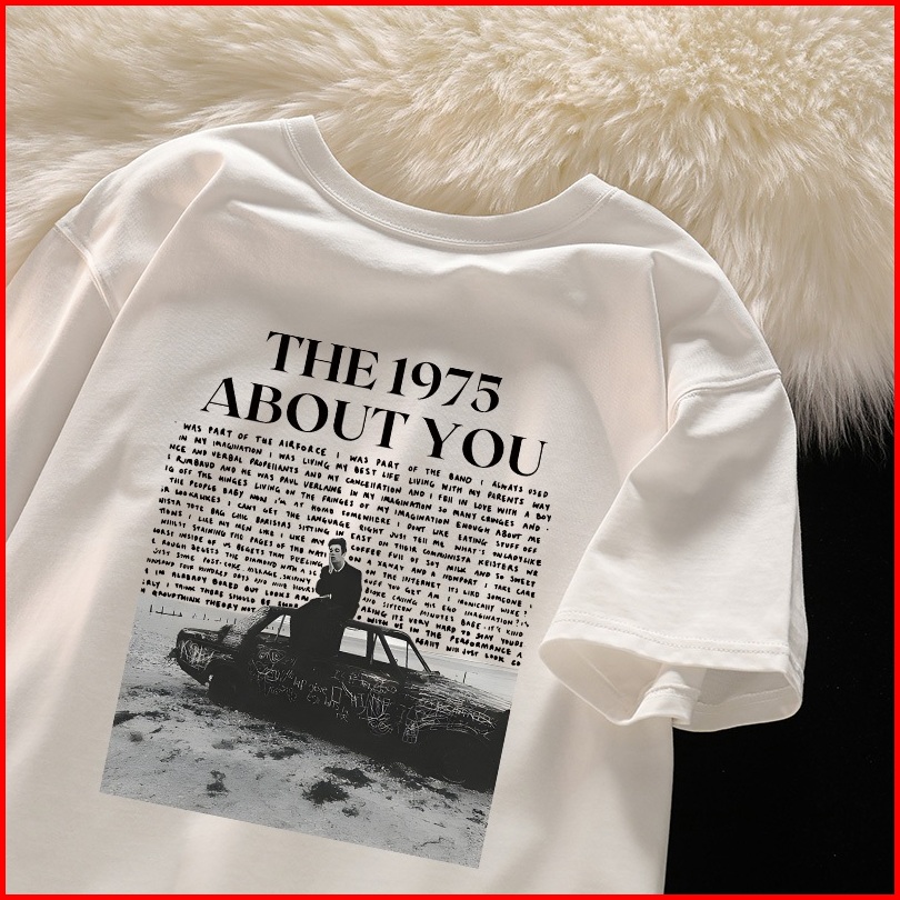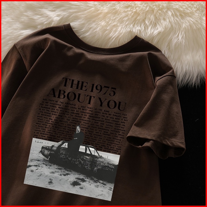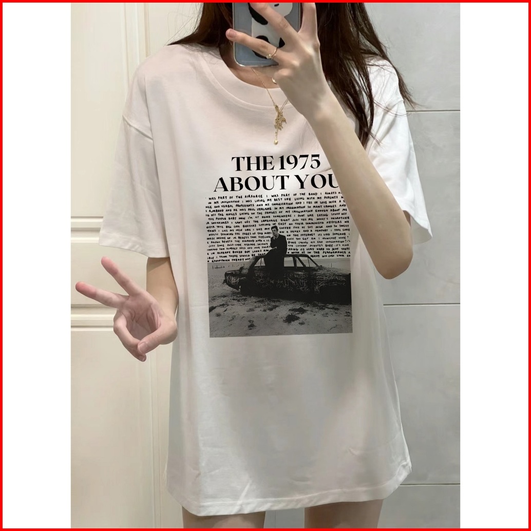 Po Floret T Shirt Oversize Lengan Pendek Kaos The 1975 About You Katun Murni Retro Style Wanita Top
