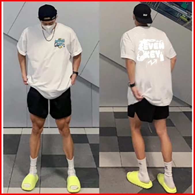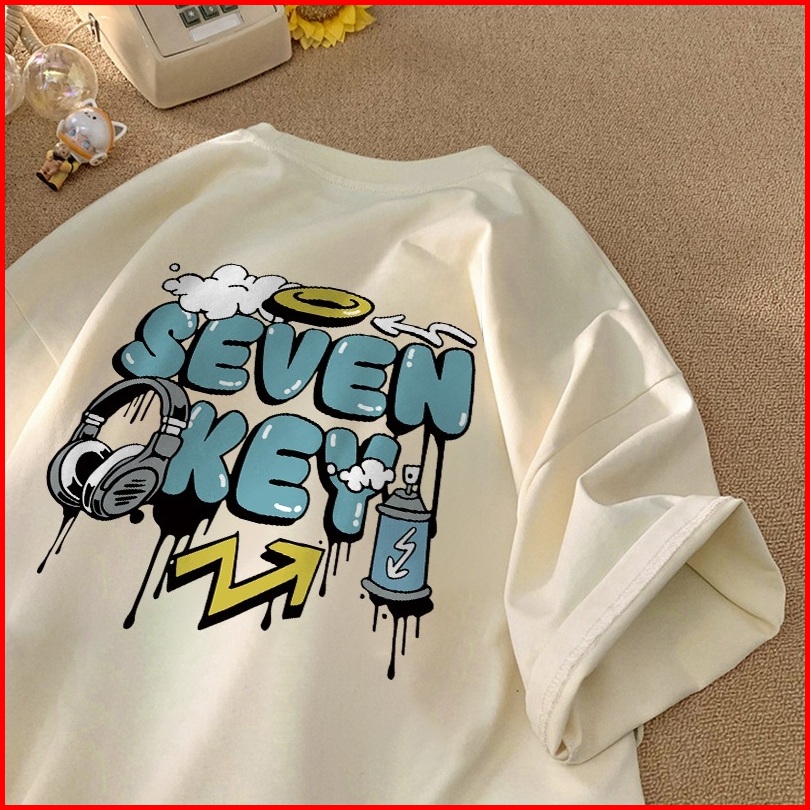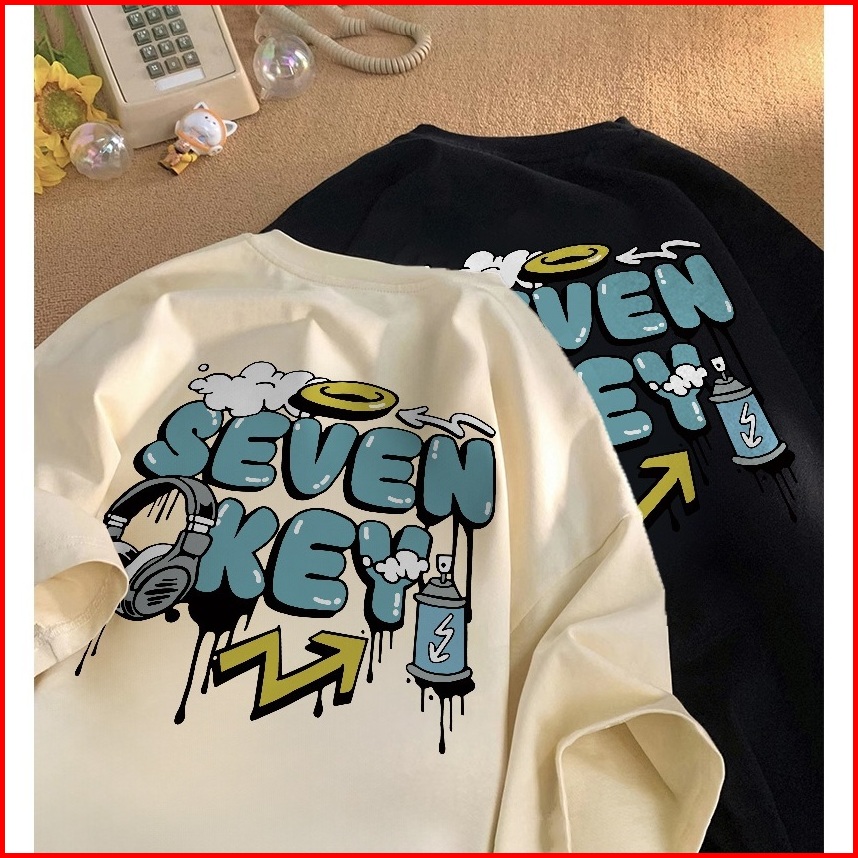 Kaos Lengan Pendek Pakaian Pria Dan Wanita Oversize Vintage Seven Key Bergaya Netral - Baju Kaos Cream Cowok Asli 100 La