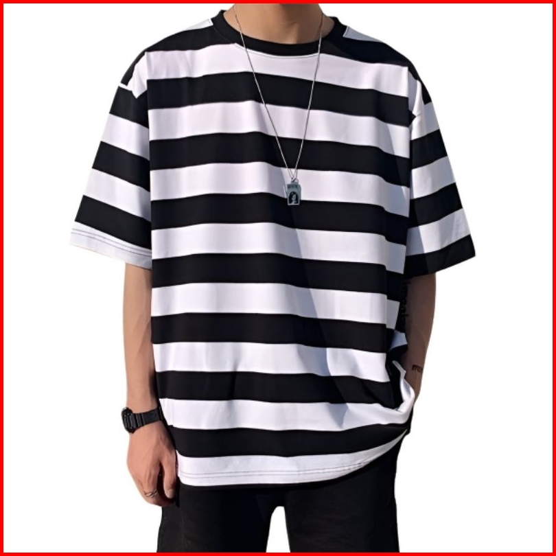 Baju Kaos Pria Garis Garis Atasan Kaos Salur Pria Kaos Stripe Salur