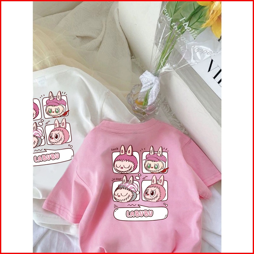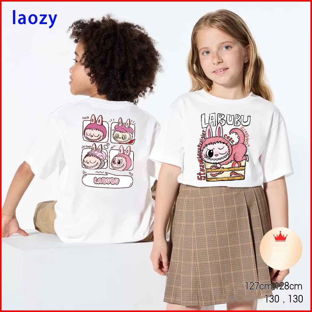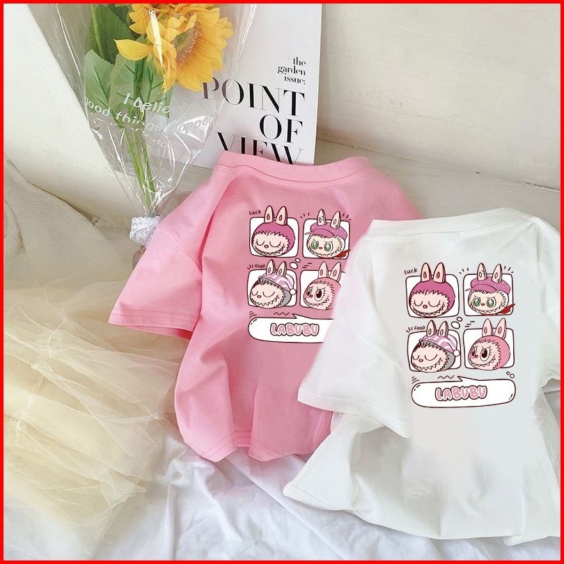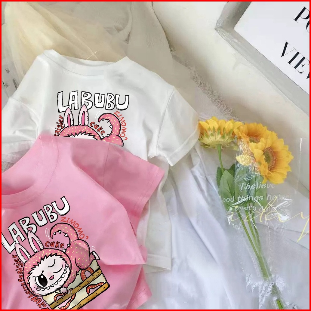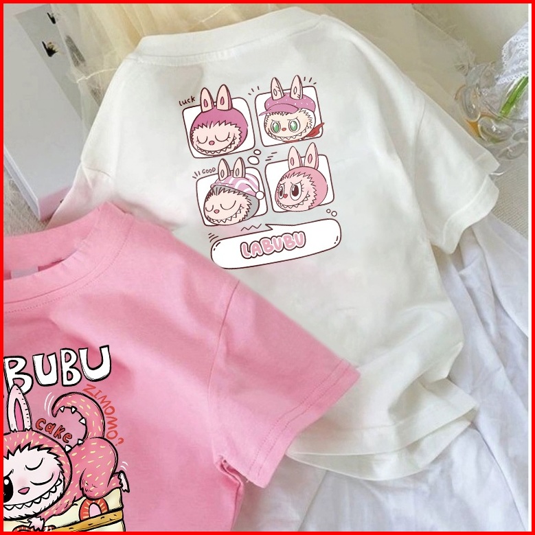 Laozy 2-12 Tahun Kaos Anak Cewek 10 Tahunimport Korea Style Perempuan Premium Baju Atasan Pola Cetak Kartun Labubu Putih