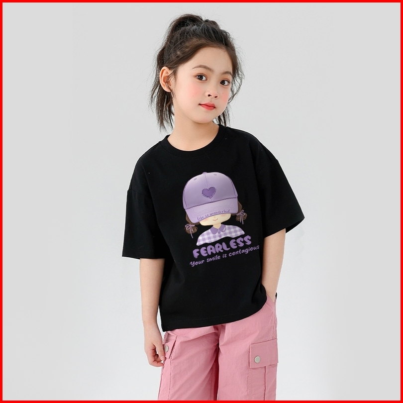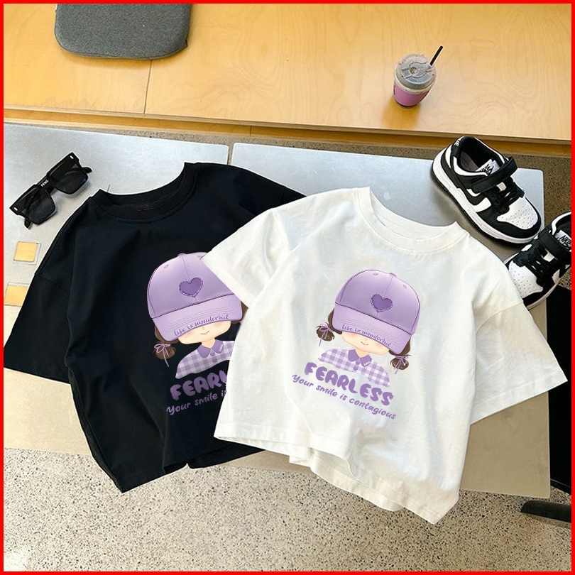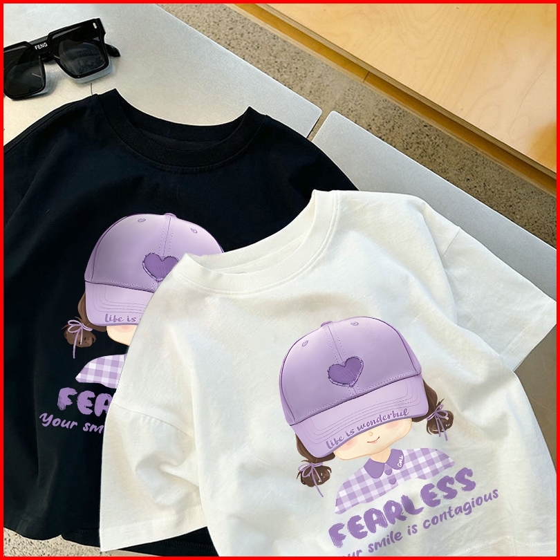 Dailyway Korean Style Kaos Atasan Putih Anak Perempuan Viral Baju Fearless Girl Anak Perempuan Baju Anak Remaja Baju Ana