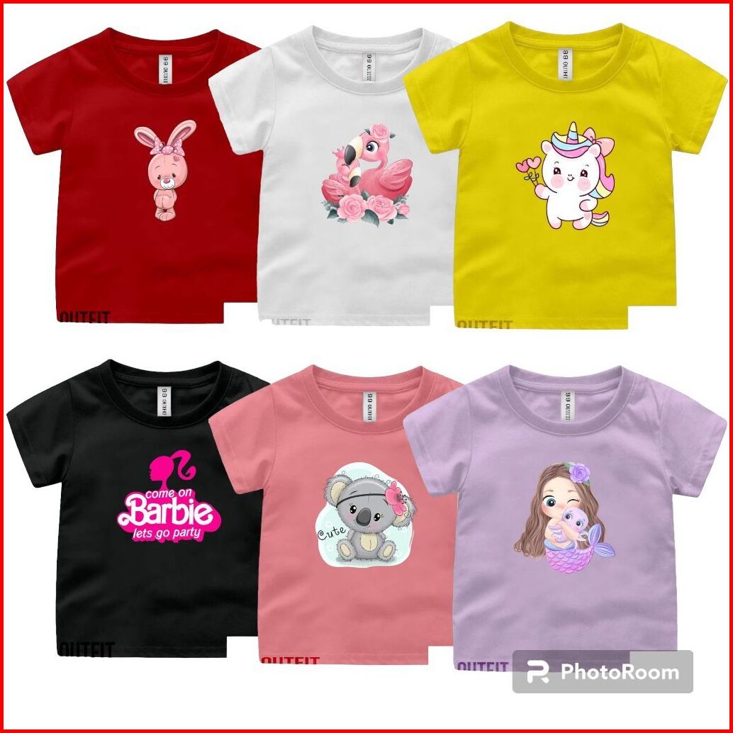 Paket Promo Isi 6pcs Kaos Anak Perempuan Motif Terbaru
