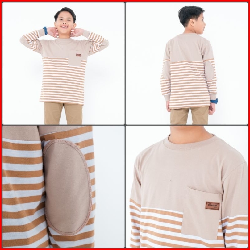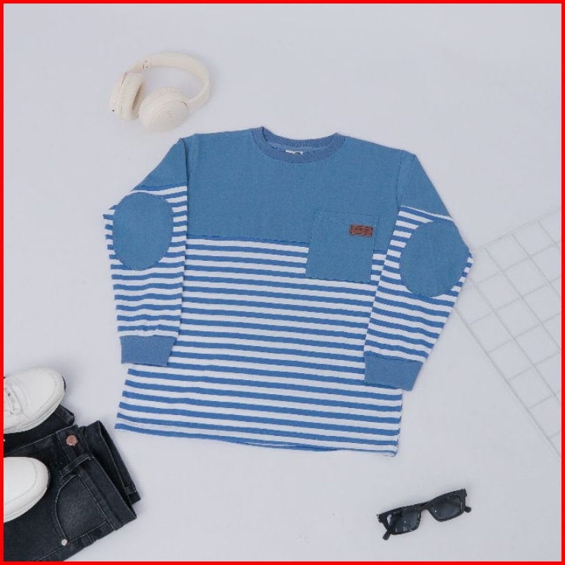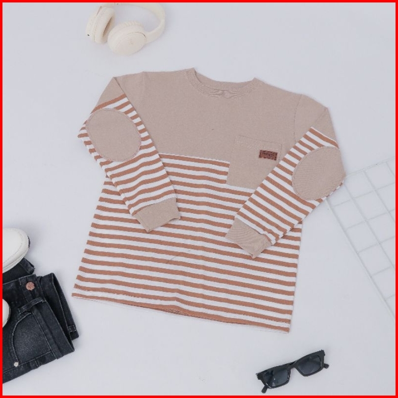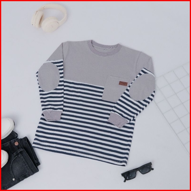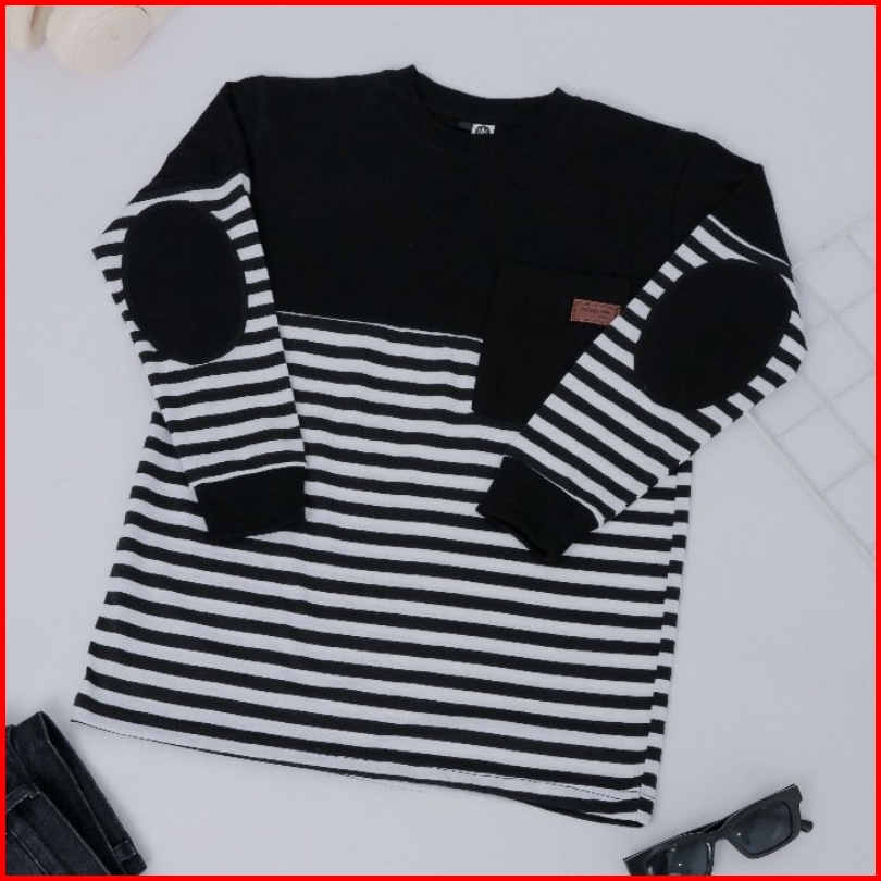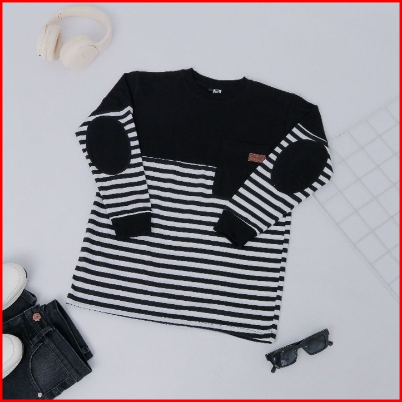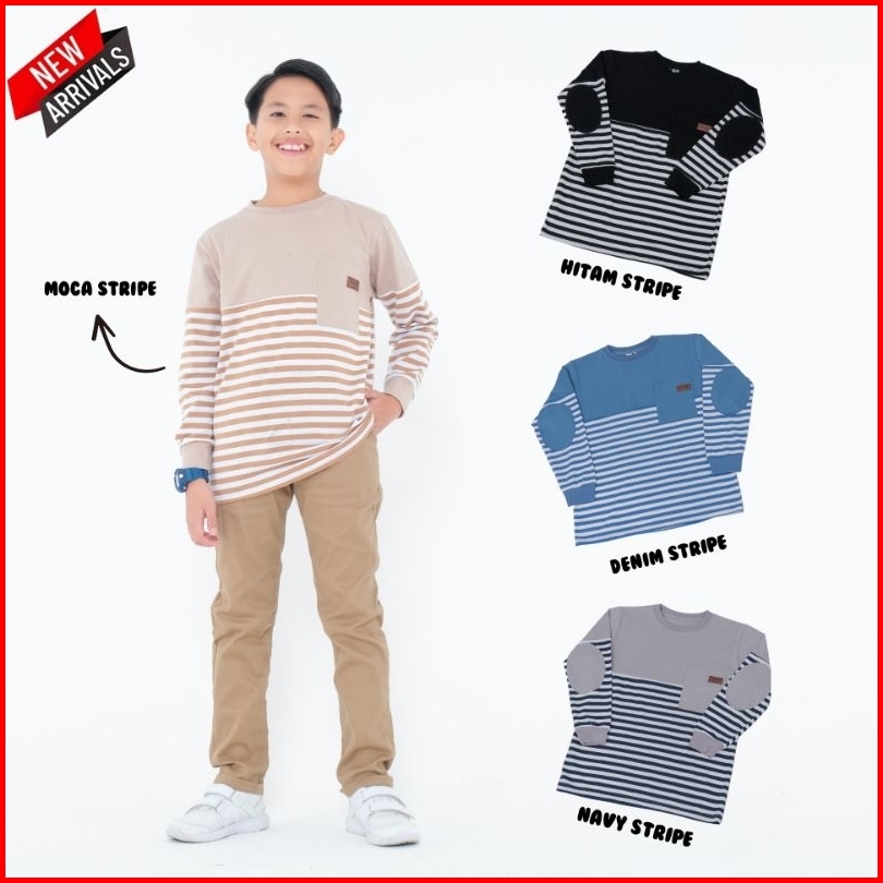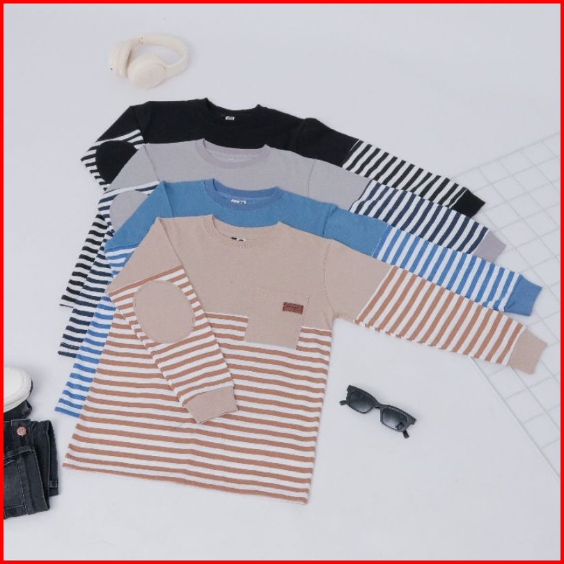 Baju Kaos Anak Laki-laki Lengan Panjang Atasan Blouse Distro Stripe Terbaru Usia 4 - 14 Tahun