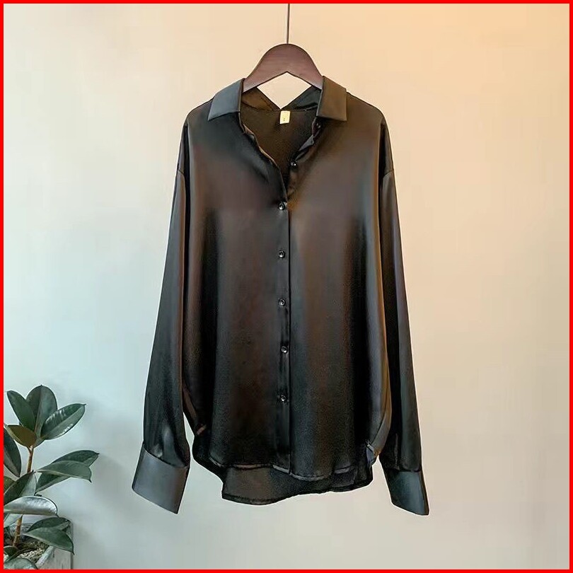 Kemeja Polos Wanita Lengan Panjang Satin Silk Big Size Ukuran S M L Xl Xxl Xxxl Xxxxl 4xl 2xl 3xl 5xl 2l 3l 4l 5l Kemeja