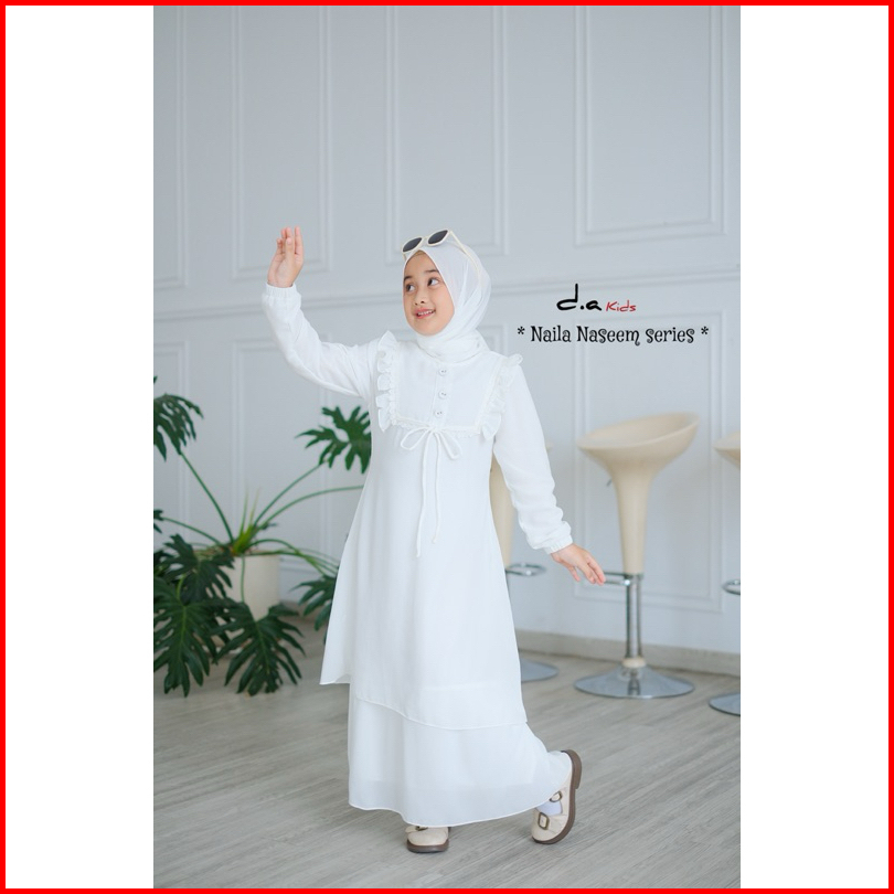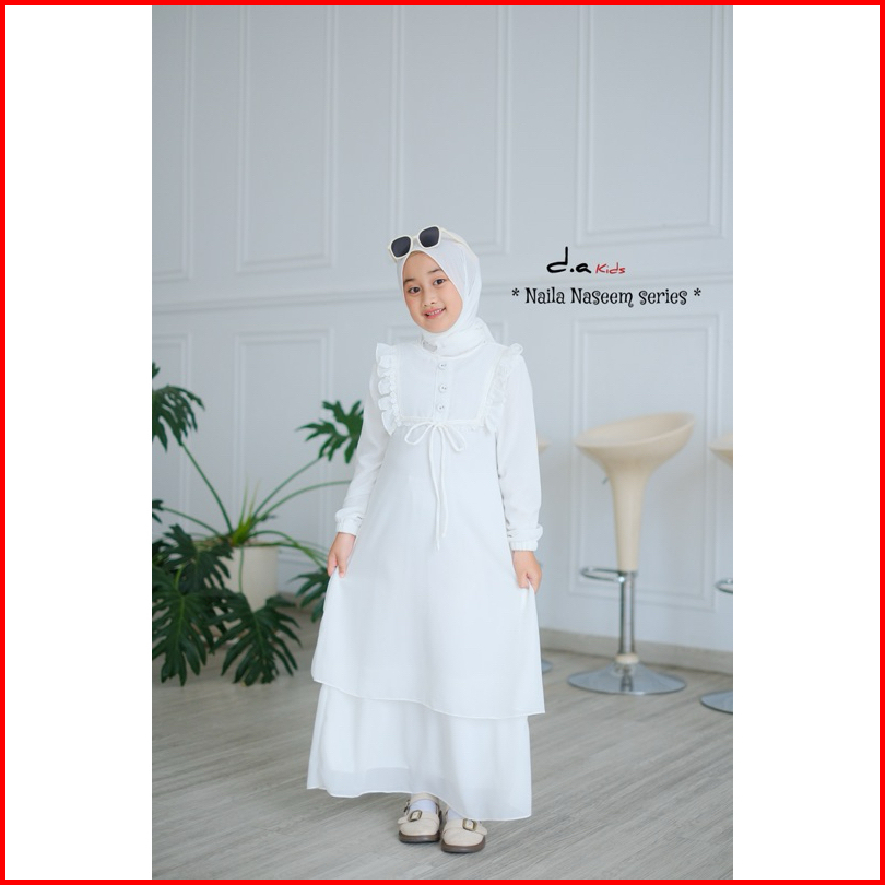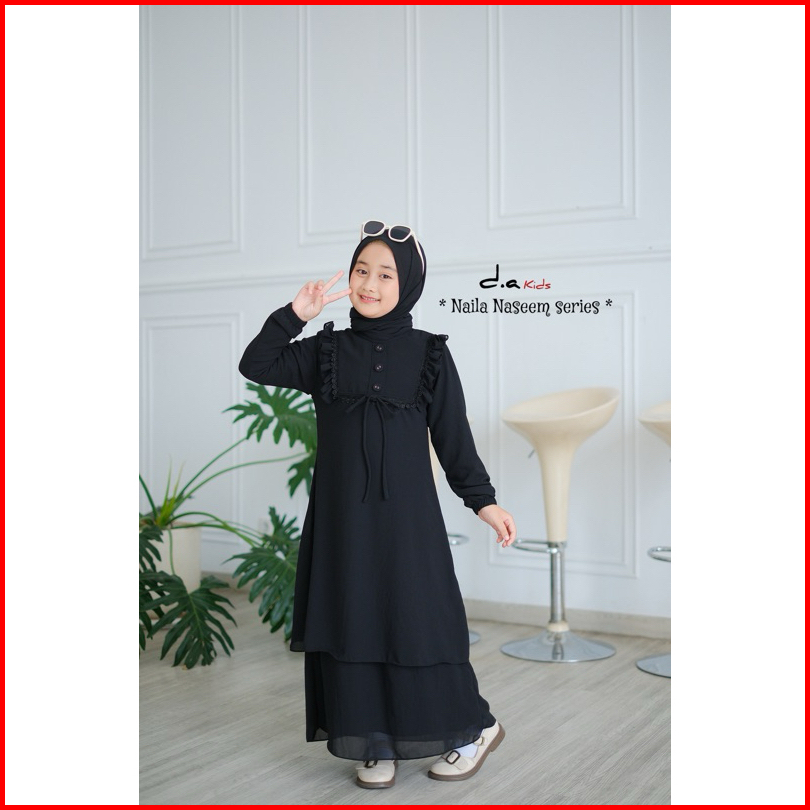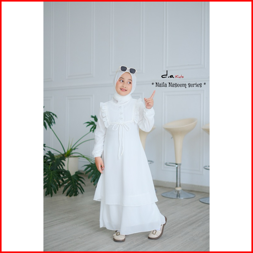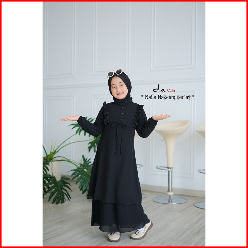 Kyrastore.id Naila Series Gamis Anak Prempuan Syari 4-12 Tahun Set Pashmina Bahan Babydoll Armany Mix Renda