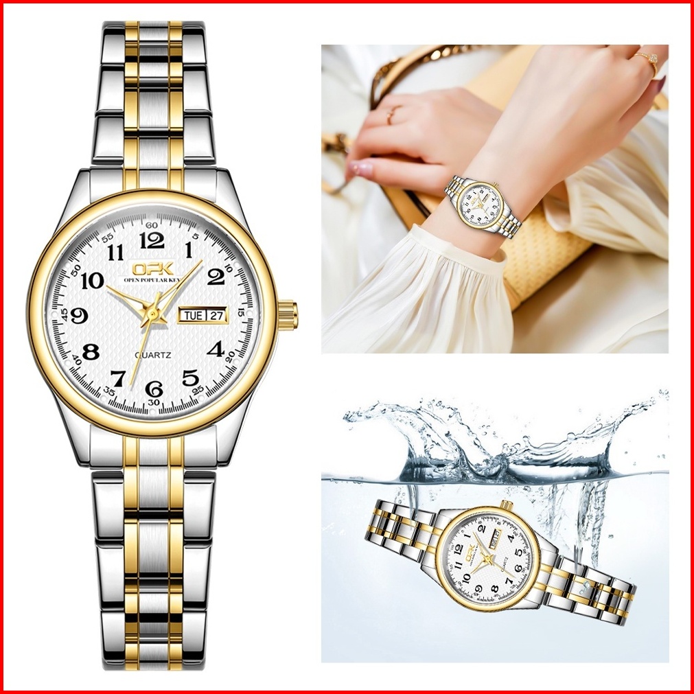 Opk Jam Tangan Wanita Original Untuk Asli Tahan Air Stainless Steel Date Luminous Quartz Fashion Women Watch Model 8110