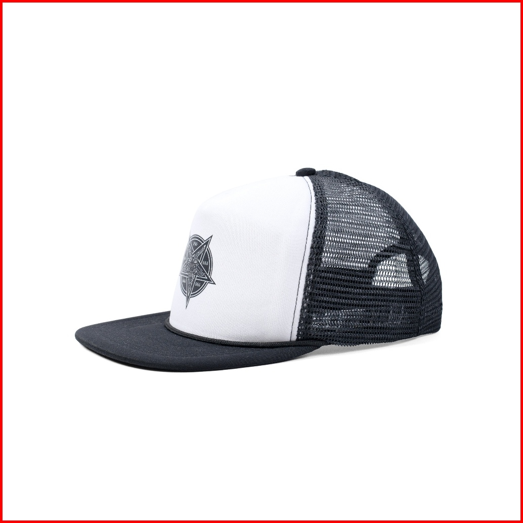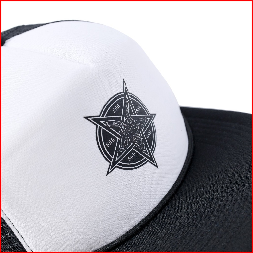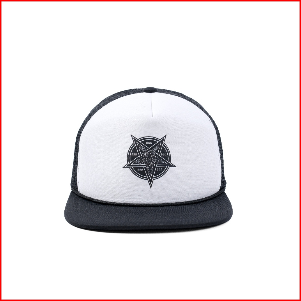 Truckerhat Topi Jaring Pentagram Black White Satanic 666 Musik Metal Unisex Pria Wanita Vintage Uniseks Dewasa Snapback