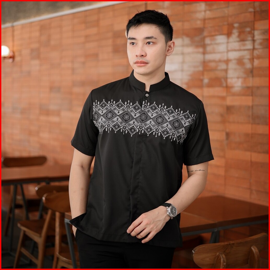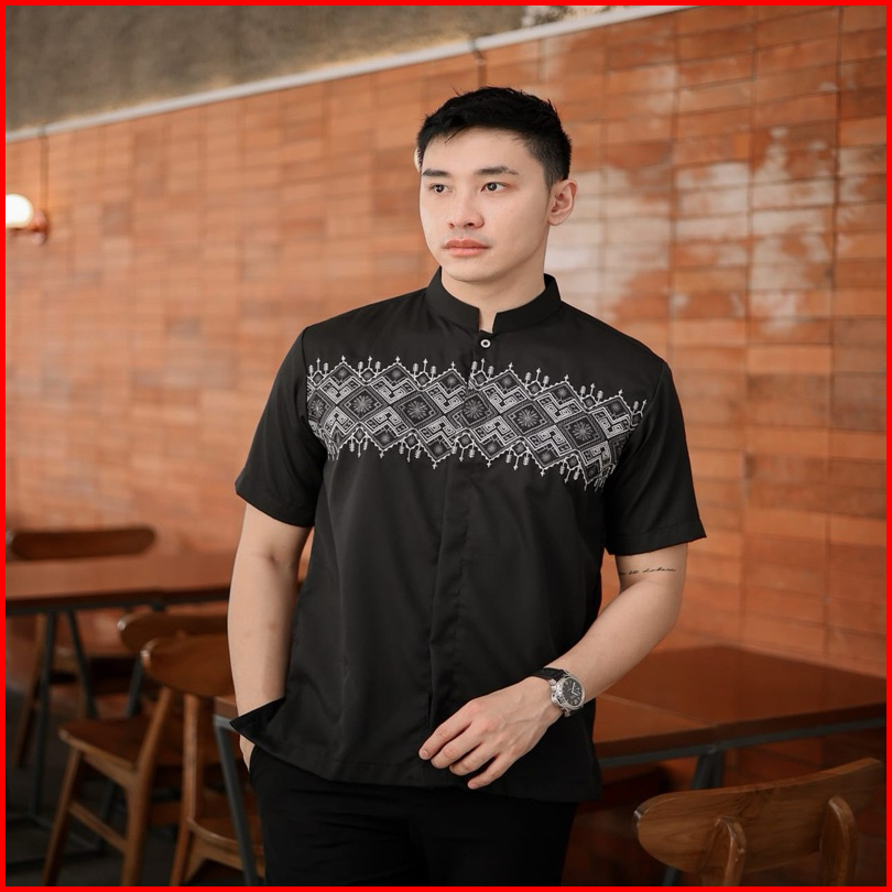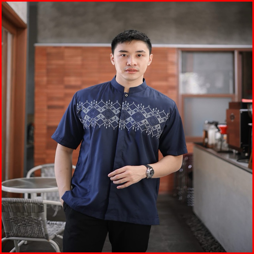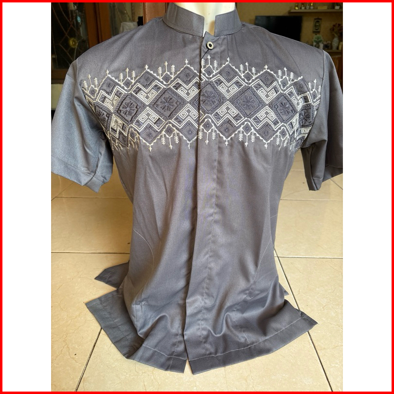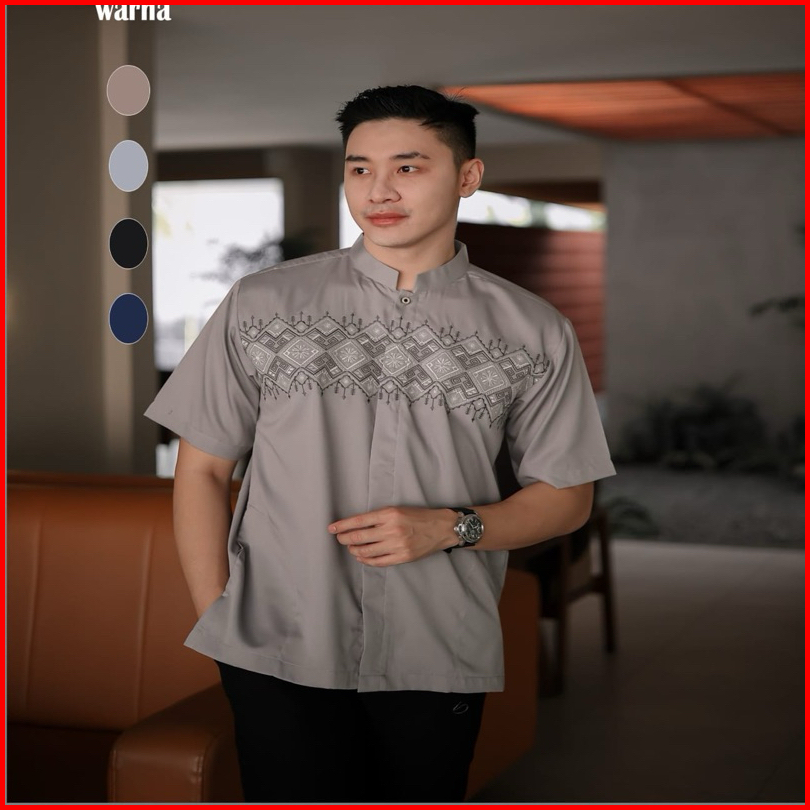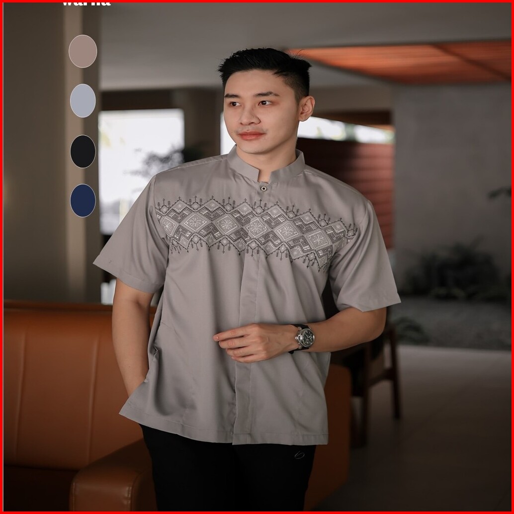 Baju Koko Muslim Bordir Pria Dewasa Tangan Pendek Bahan Katun Toyobo Warna