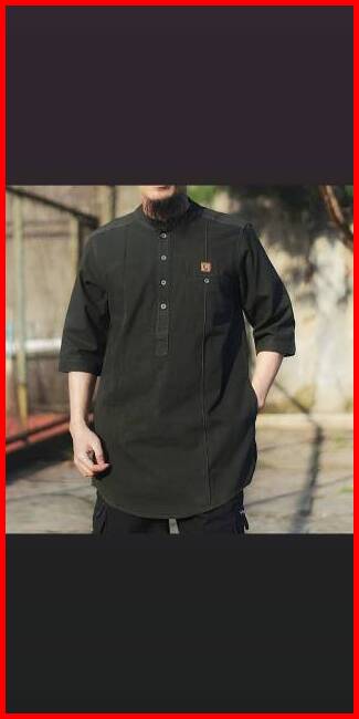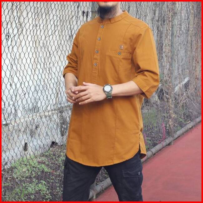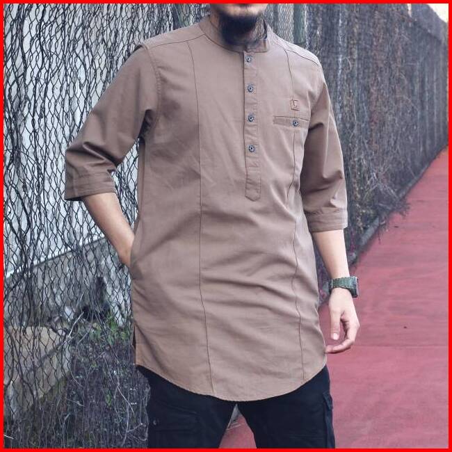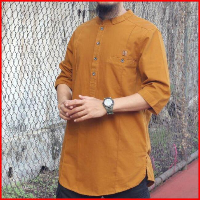 Luthfi Baju Koko Pria Dewasa Half Button Lengan 3 4 Canvas Full Katun Mocca