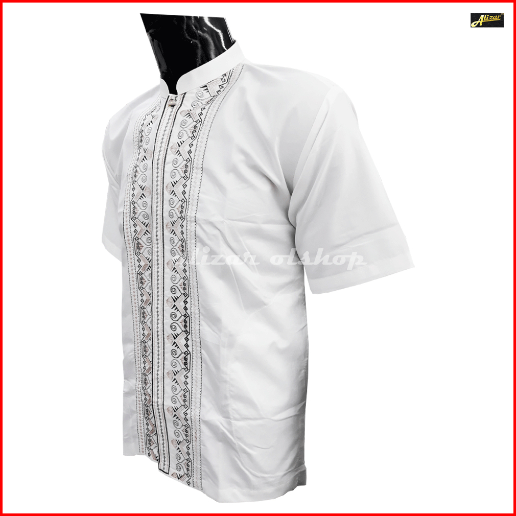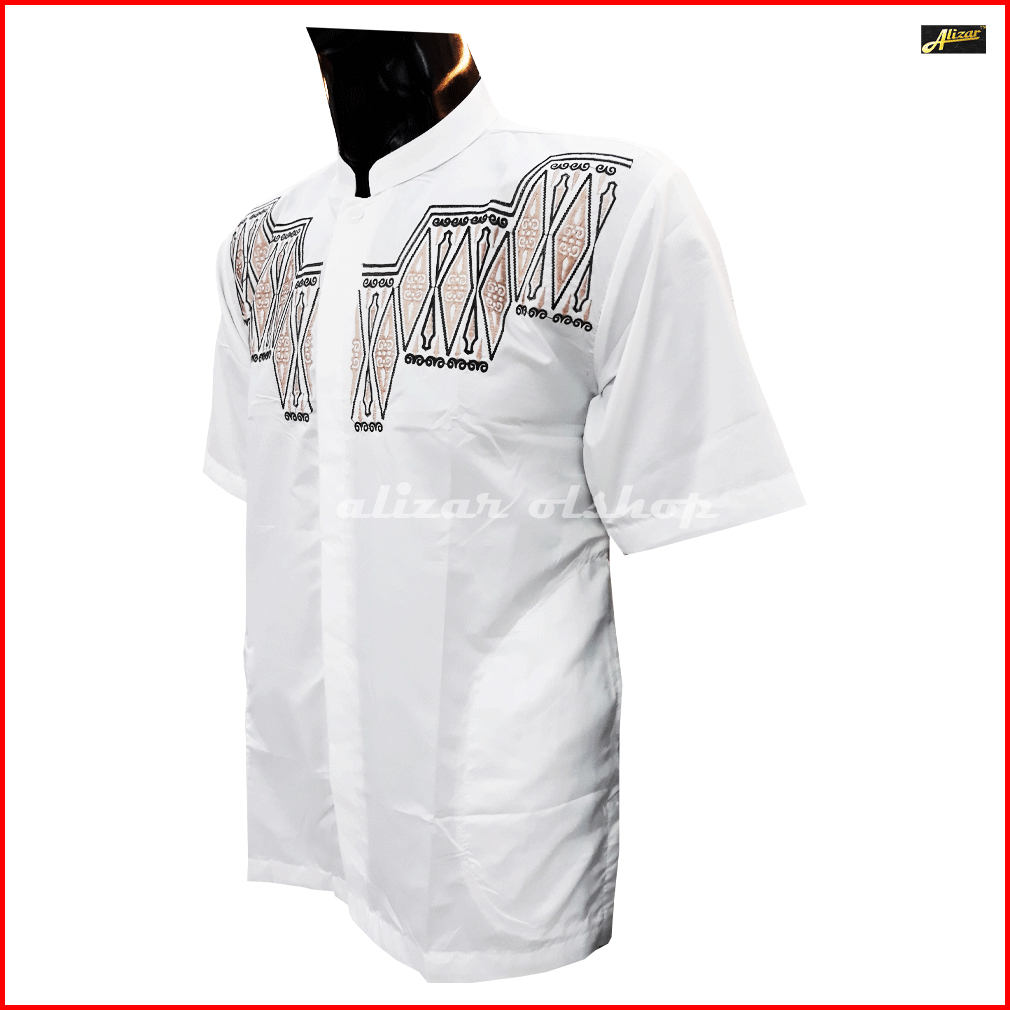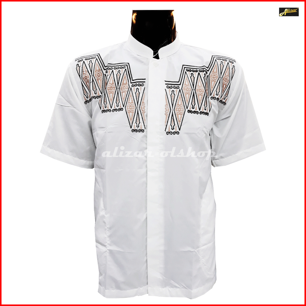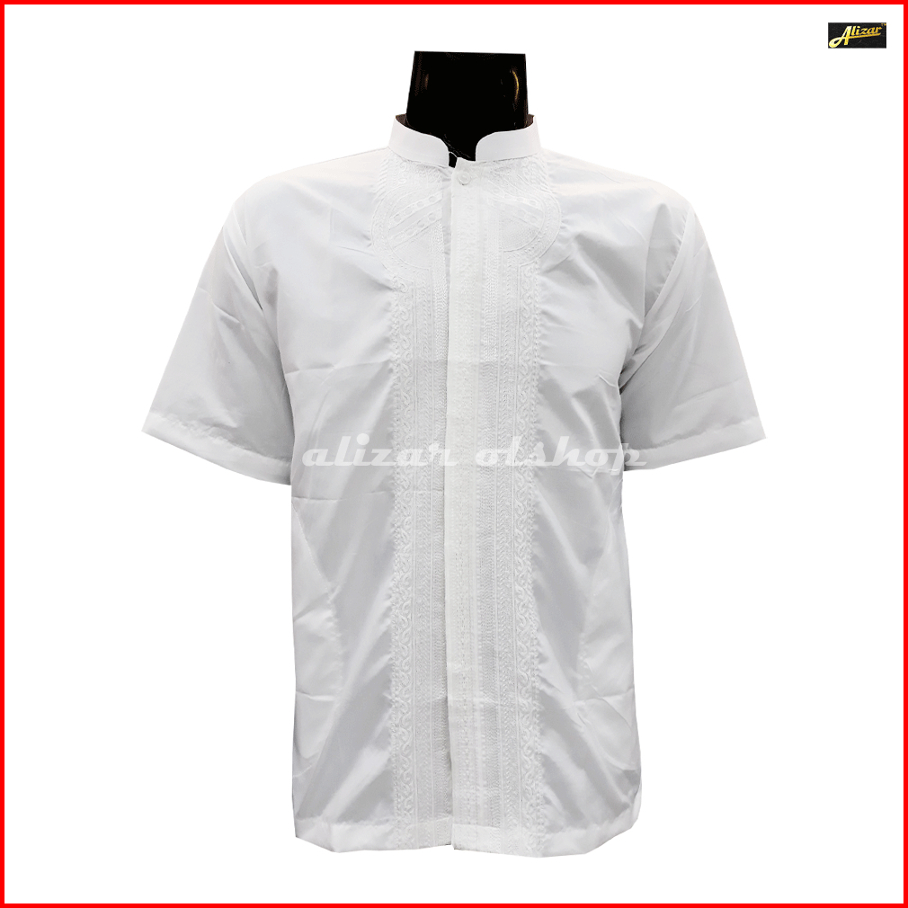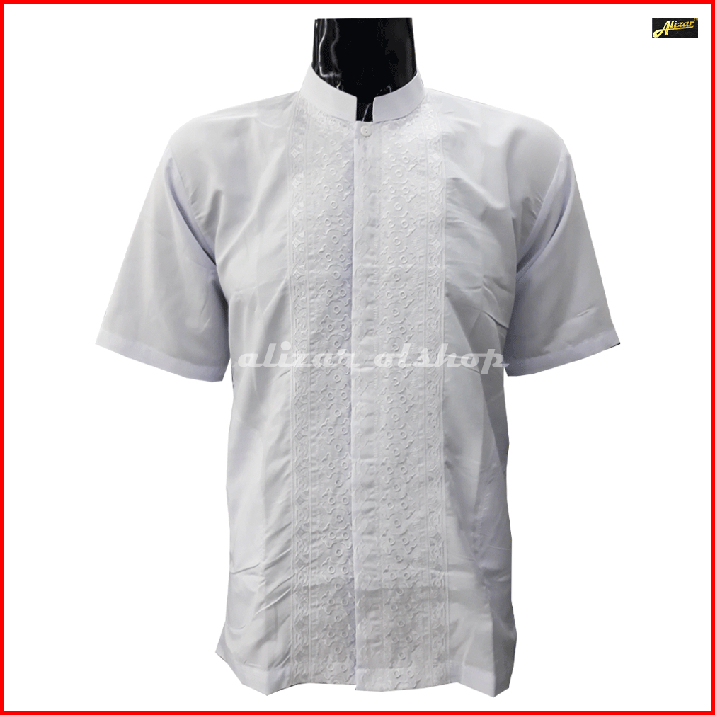 Baju Koko Bordir Pria Baju Koko Muslim Dewasa Koko Bordir Pria Lengan Pendek Khusus Putih