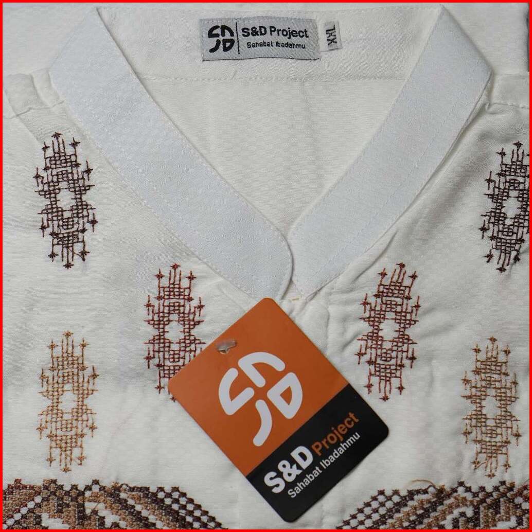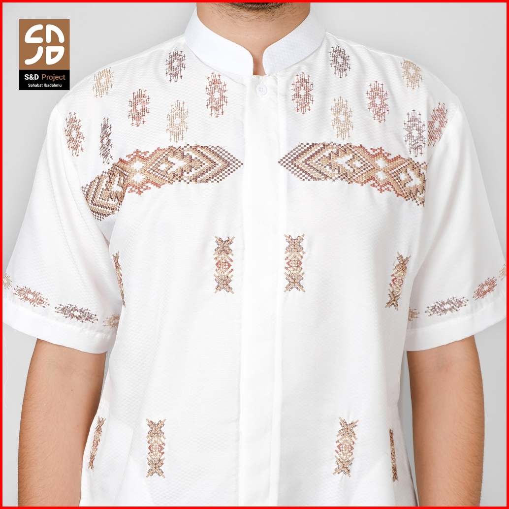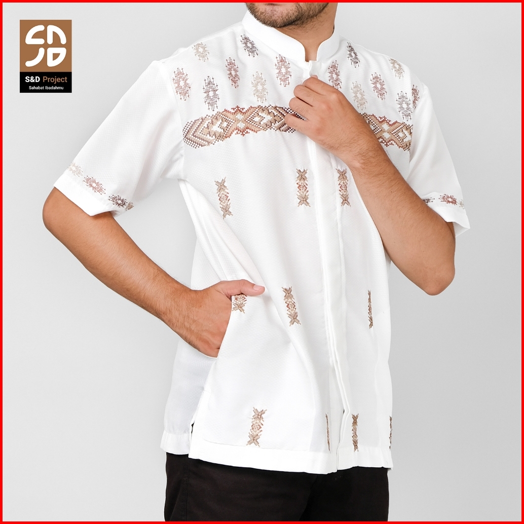 S D Project Baju Kemeja Koko Bahan Polikatun Bordir Jumbo Lengan Pendek Ukuran S M L Xl Xxl 3xl 4xl - Putih Tulang