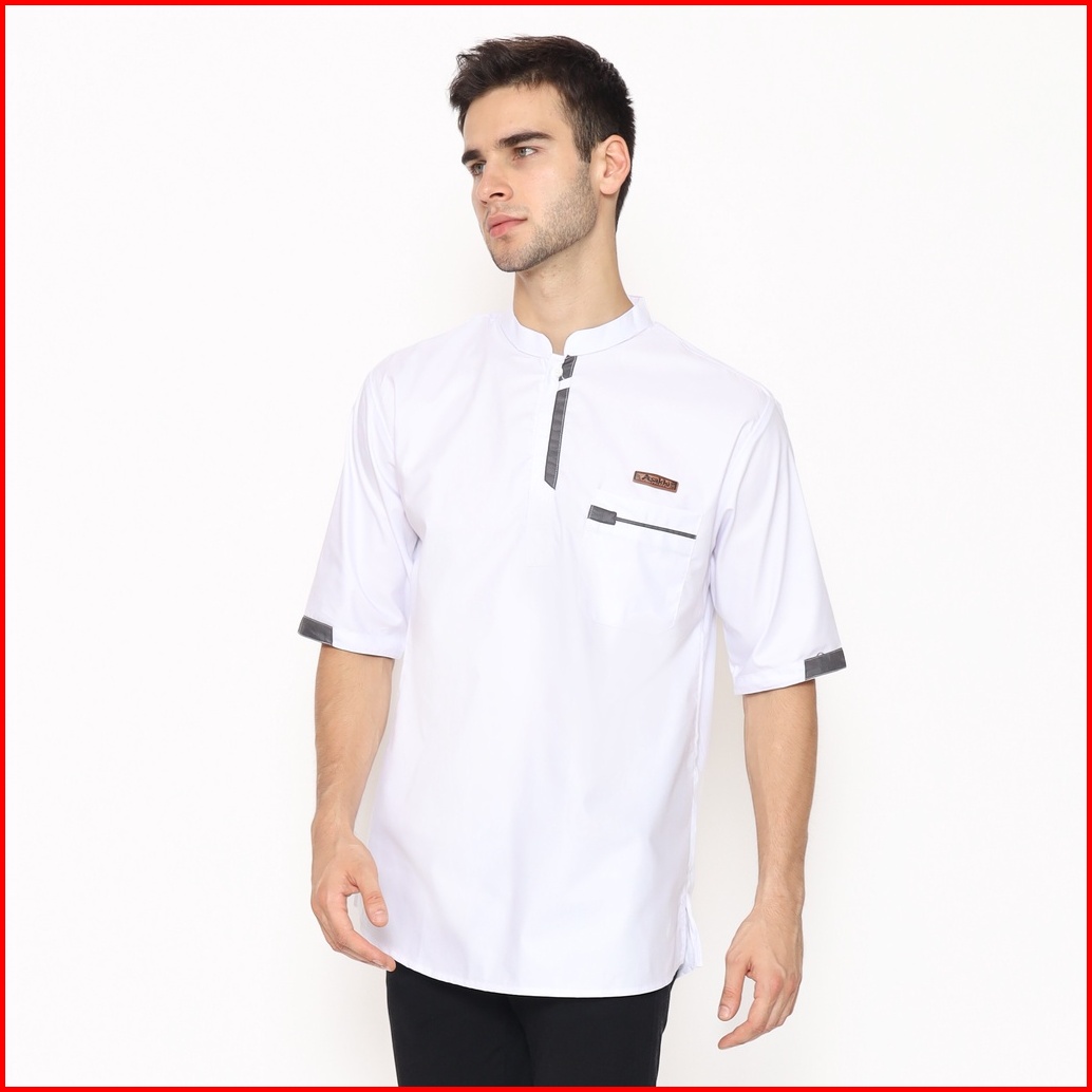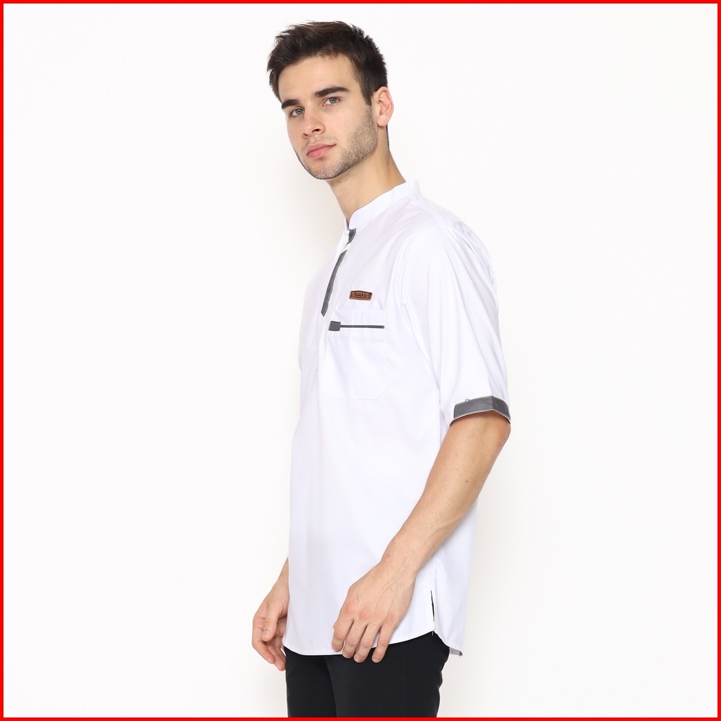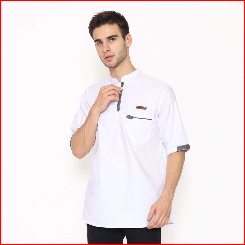 Asakhi - Baju Koko Kurta Pria Lengan Pendek Motir Arzad Warna Putih M L Xl