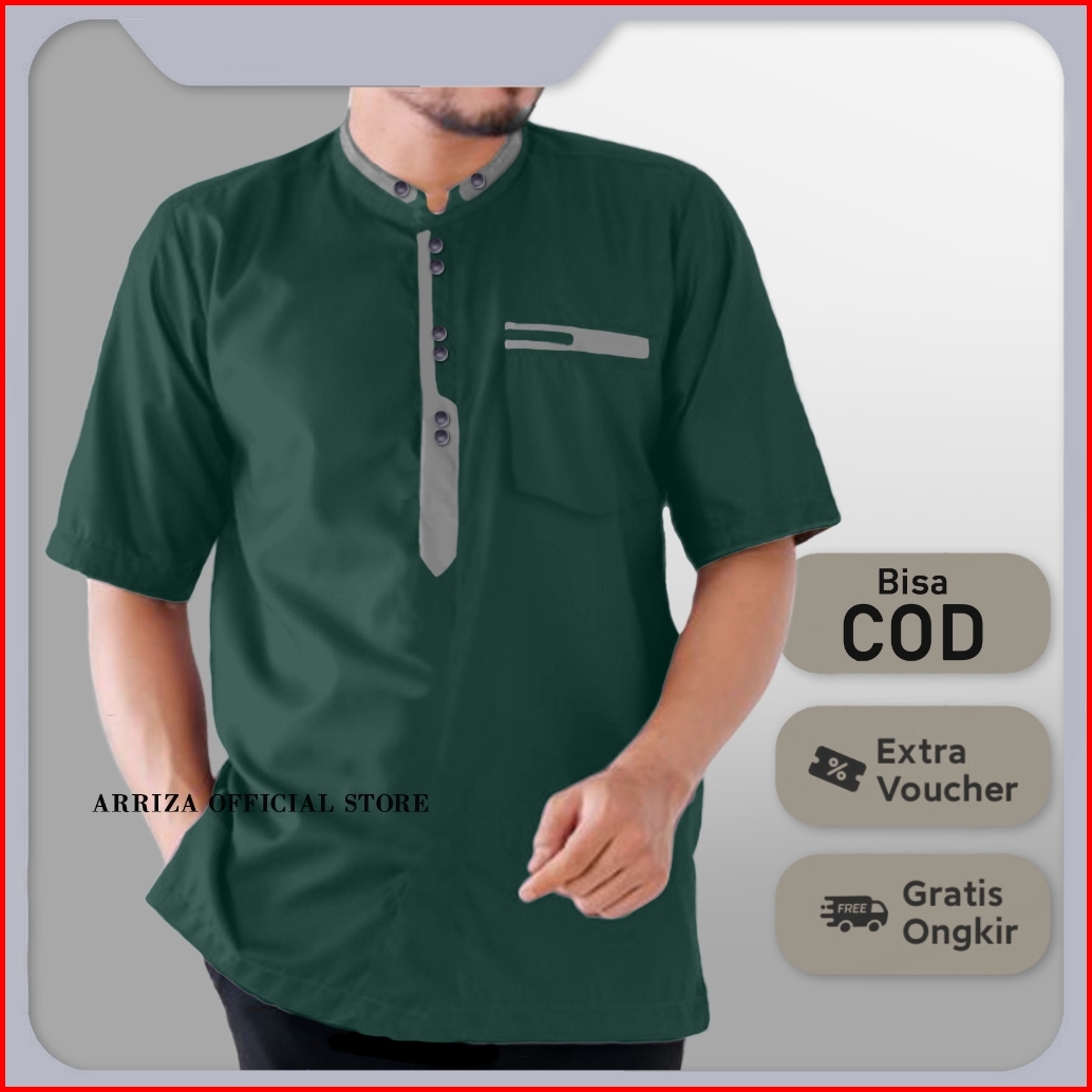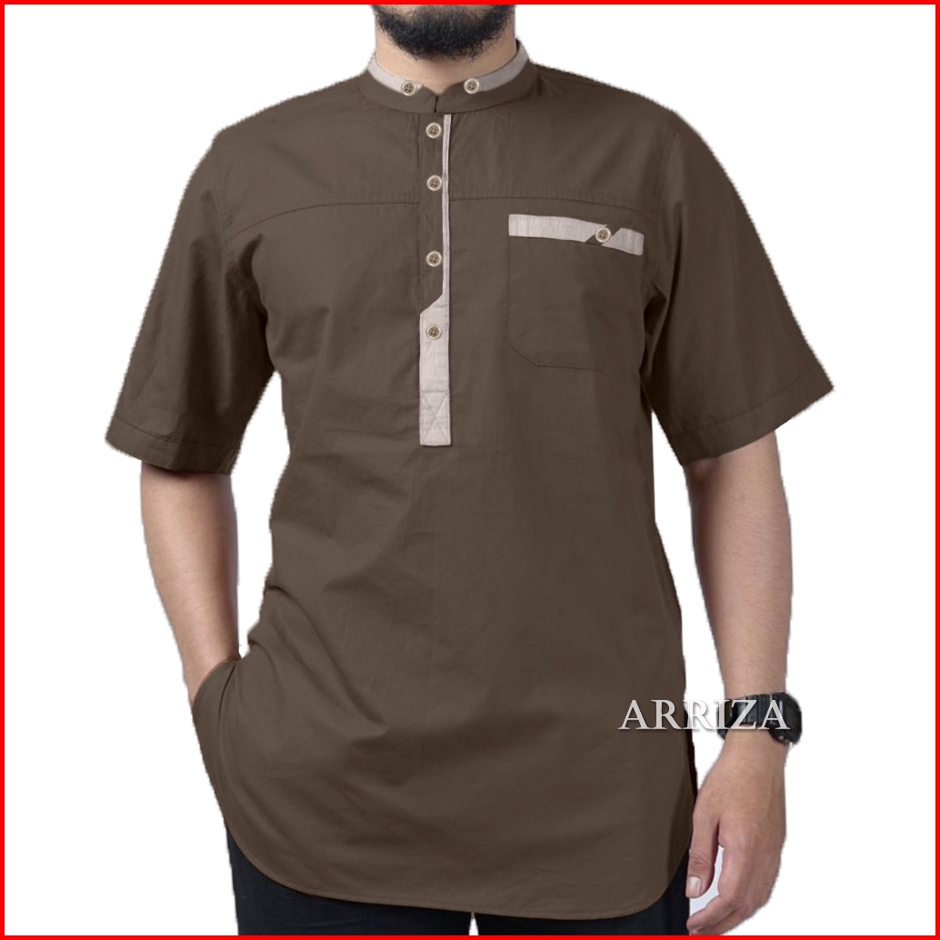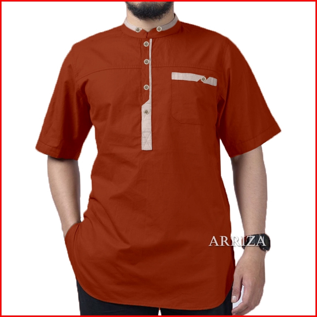 Baju Koko Kurta Atasan Muslim Pria Dewasa Lengan Pendek Motif Baru Bahan Katun Impor