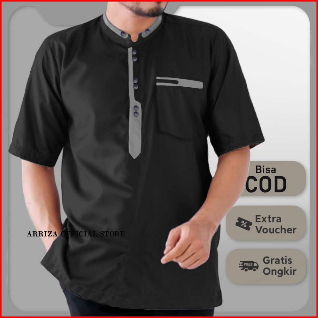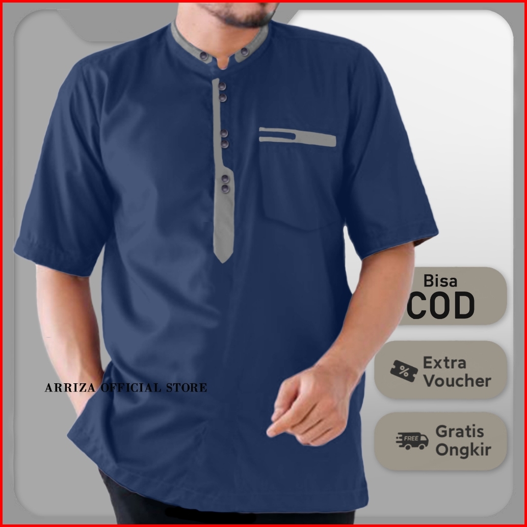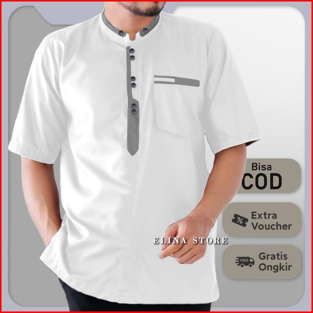 Baju Koko Kurta Atasan Muslim Pria Dewasa Lengan Pendek Motif Baru Bahan Katun Impor