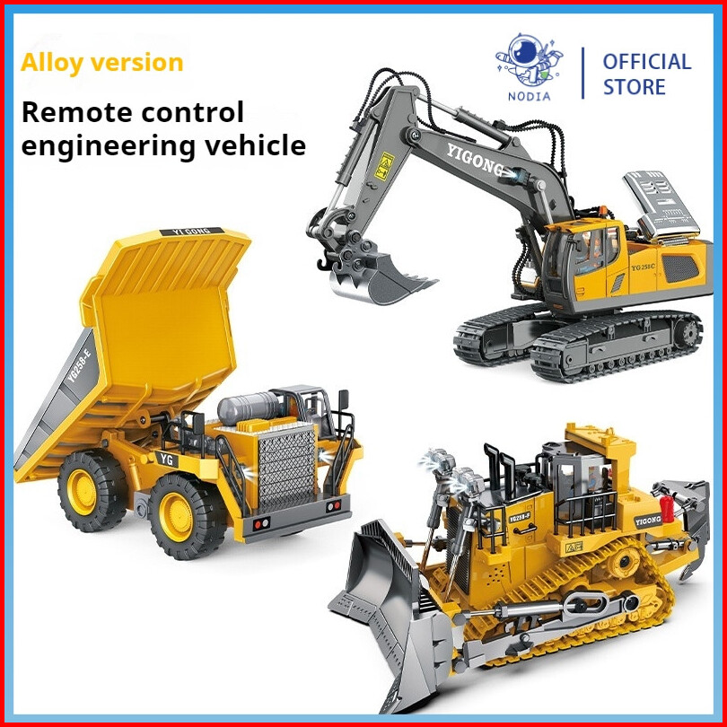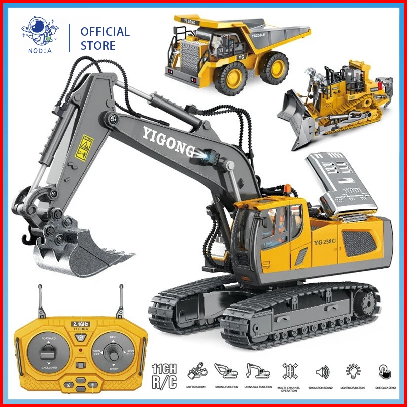 Nodia Ekskavator Remote Control Paduan 2.4g Buldoser Truk Sampah 11 Saluran Kendaraan Rekayasa Plastik Paduan Mainan Ele
