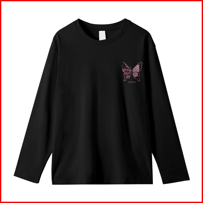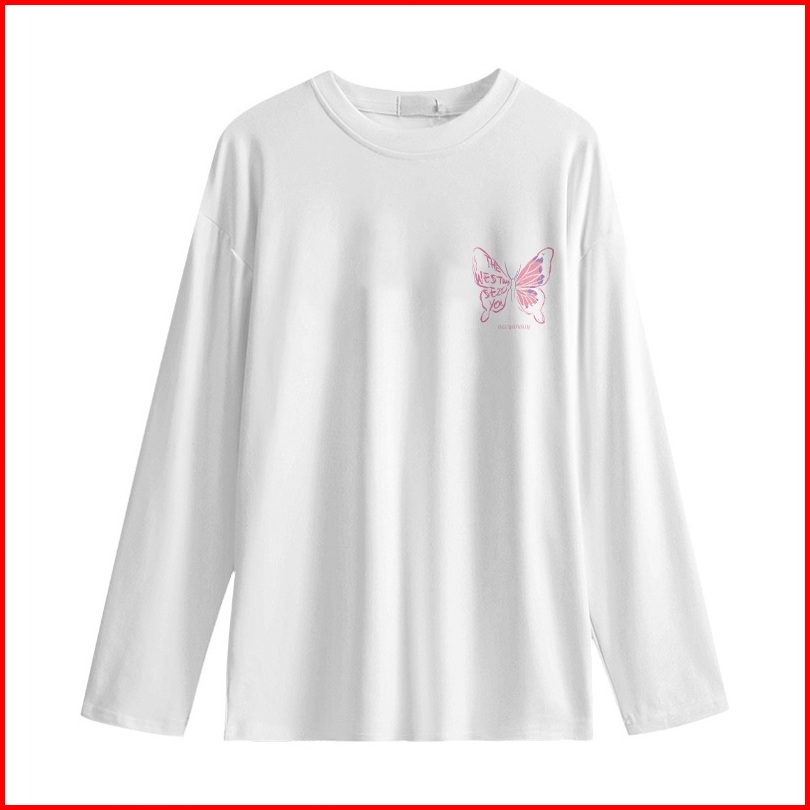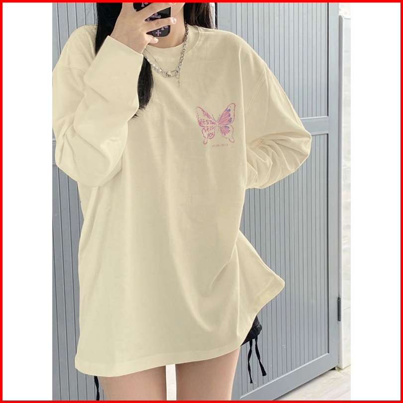 Kaos Oversize Lengan Panjang Wanita Korean Style Cute Pink Butterfly Baju Kaos Lengan Panjang Wanita Terbaru Kekinian At