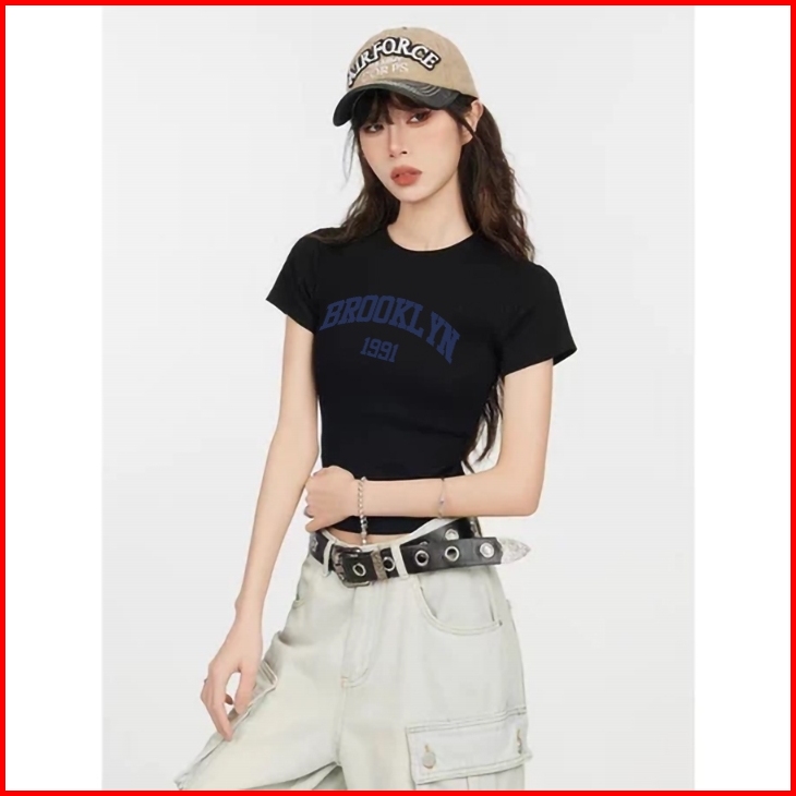 Xiaozhainv Baju Atasan Wanita Terbaru Pria Wanita Unisex Street Style Kaos Ketat Wanita Atasan Kaos Wanita Kekinian Baju