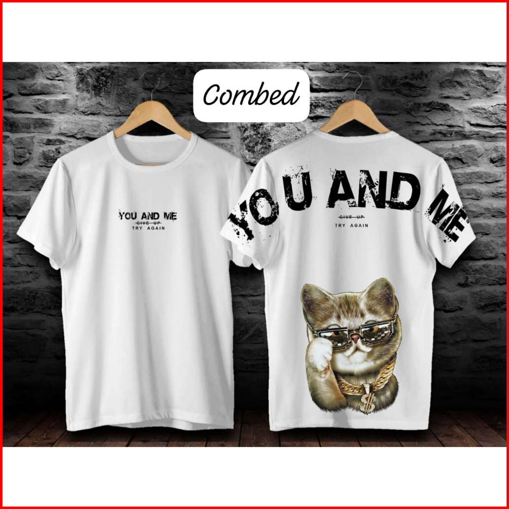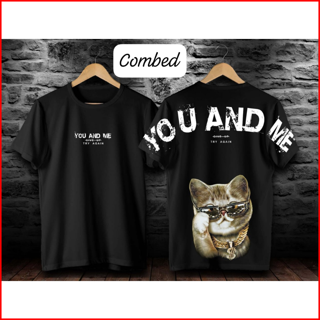 Kaos T-shirt Distro Cat You And Me Kaos Motif Kucing Gaul Santui Kekinian Atasan Kaos Pria Wanita Kaos Distro Motif Beru