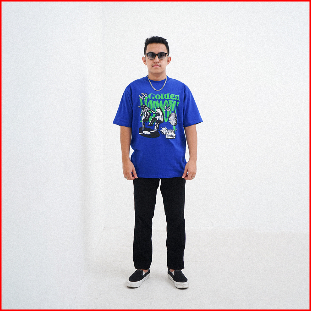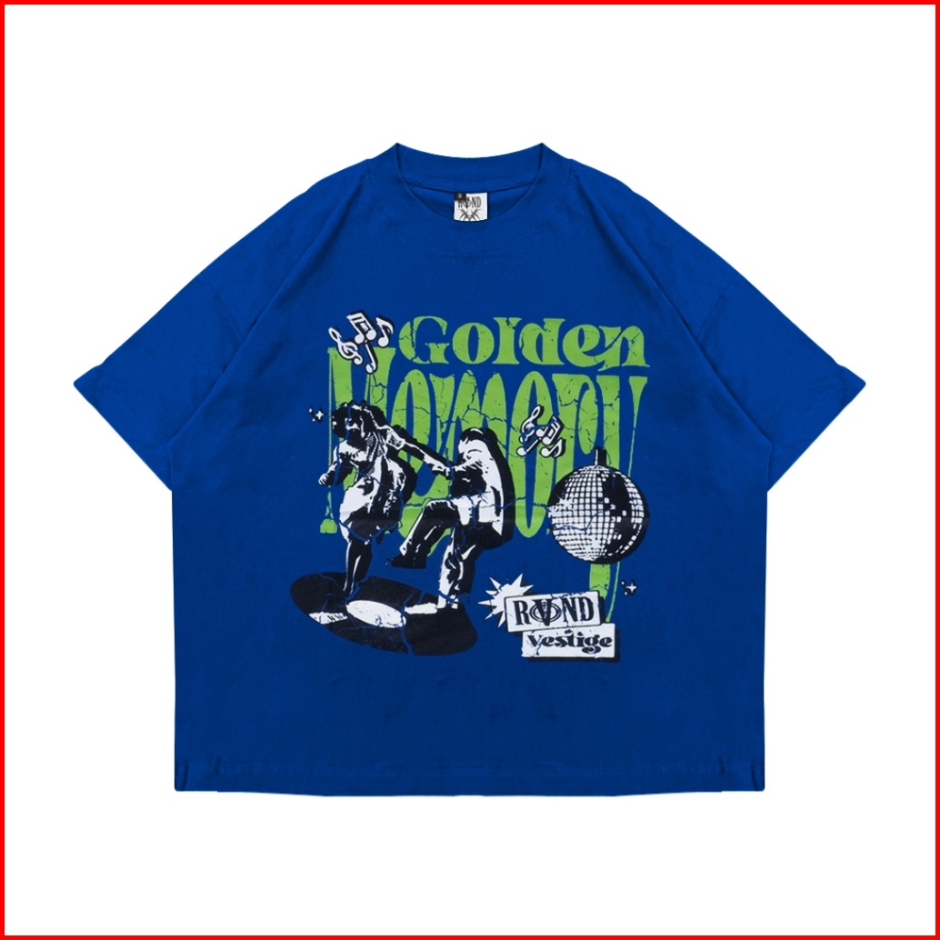 Round Oversize Boxy Tshirt Kaos Golden Blue Unisex