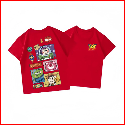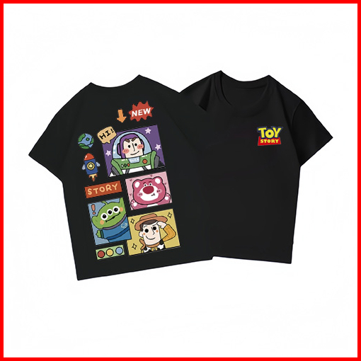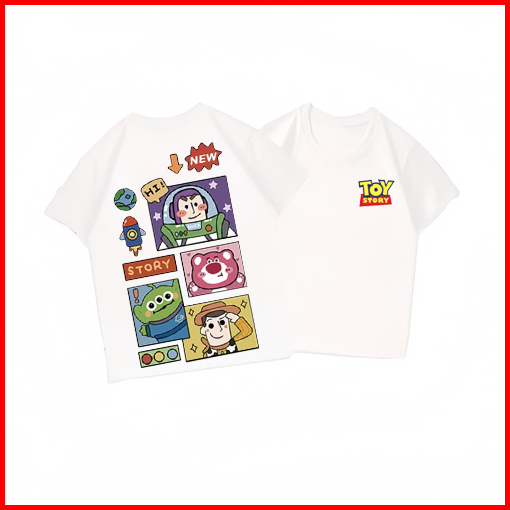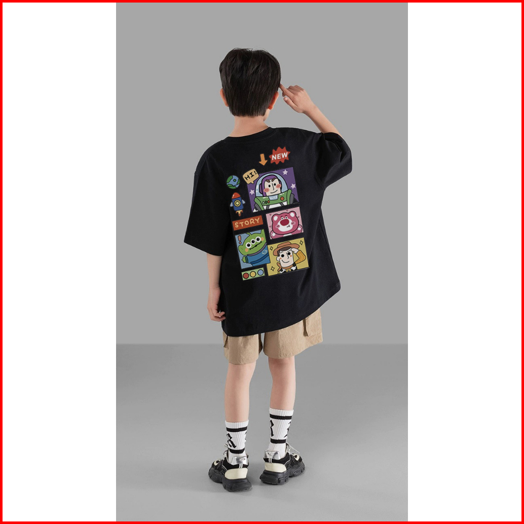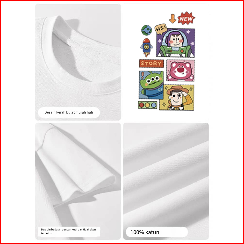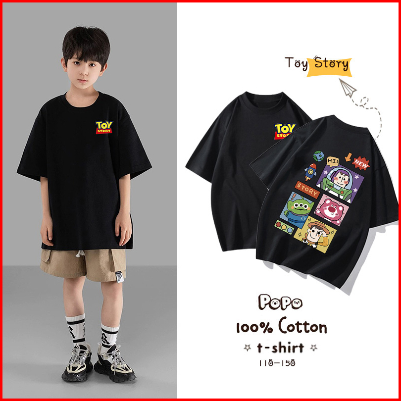 Popo 2025ss Terbaru Import Oversize 100 Cotton Cartoon Toy Story Baju Atasan Kaos Anak Perempuan Unisex Children S T-shi