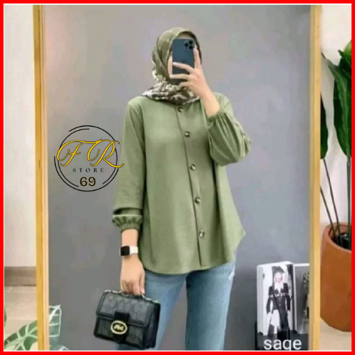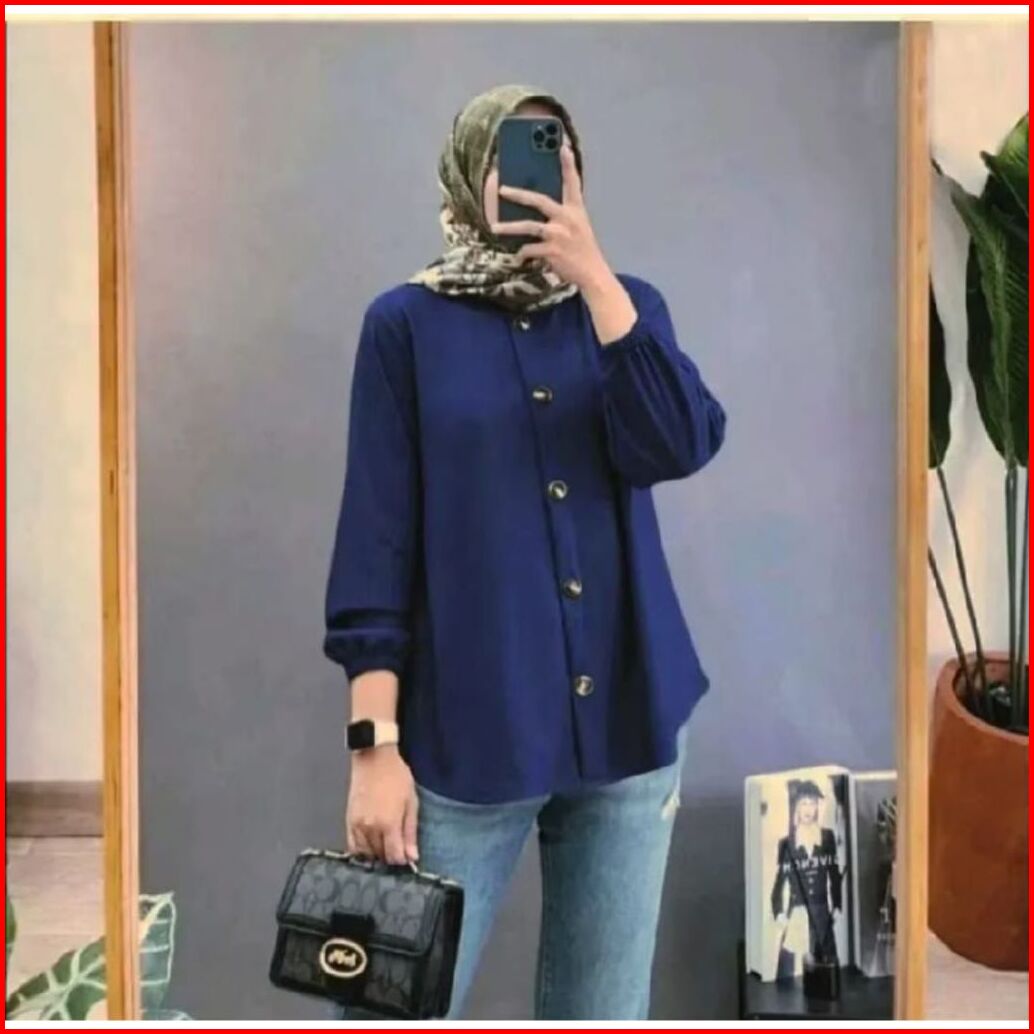 Kemeja Wanita Kekinian Crinkle Airflow Premium-atasan Wanita Polos Lengan Panjang Terbaru Kekinian Ukuran Jumbo
