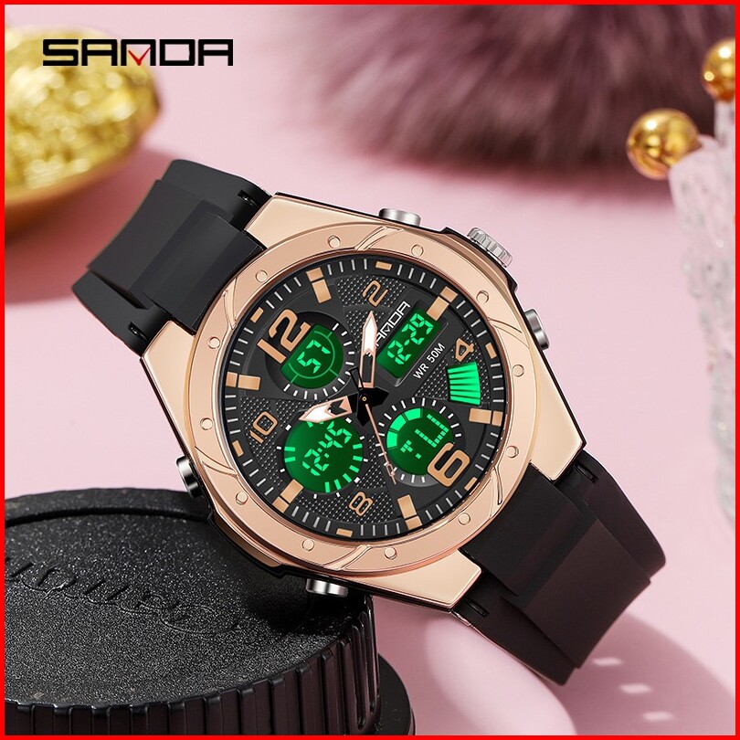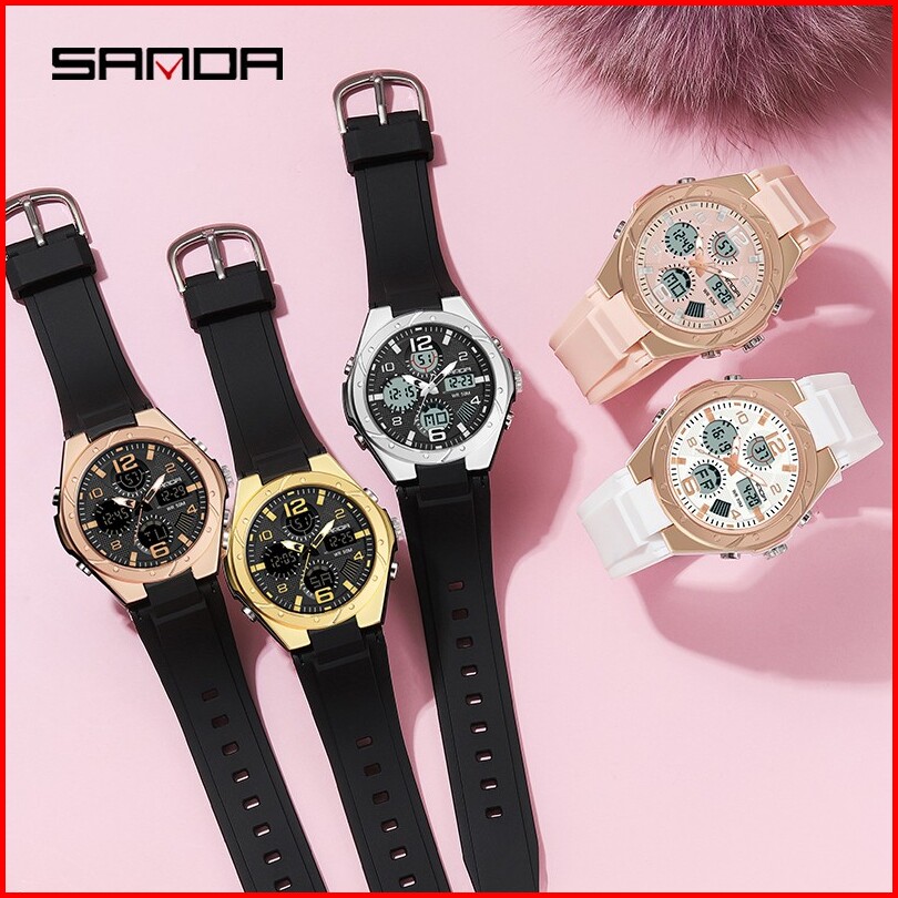 Sanda 6062 Jam Tangan Wanita Digital Analog Dual Time Shockproof Anti Air Currenos