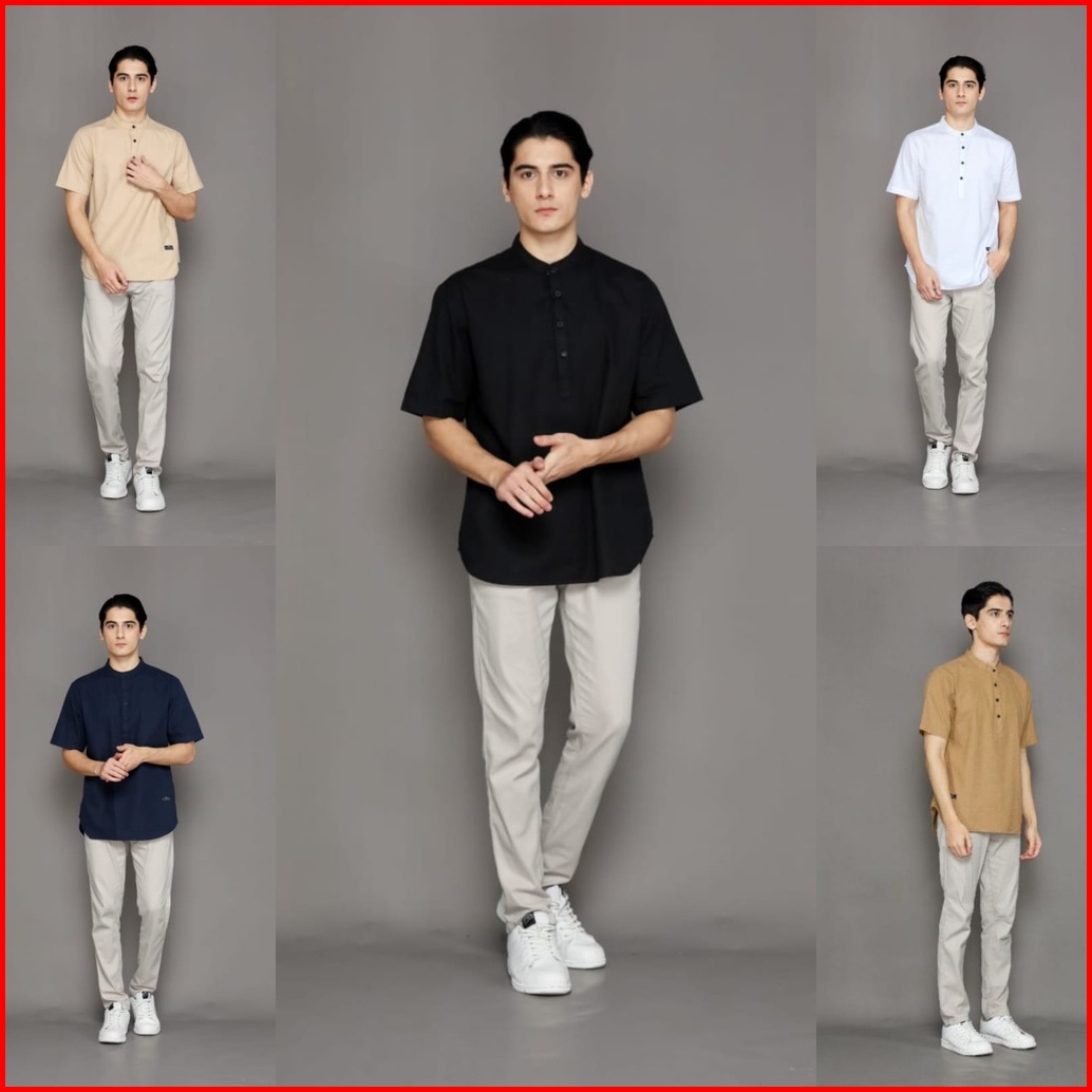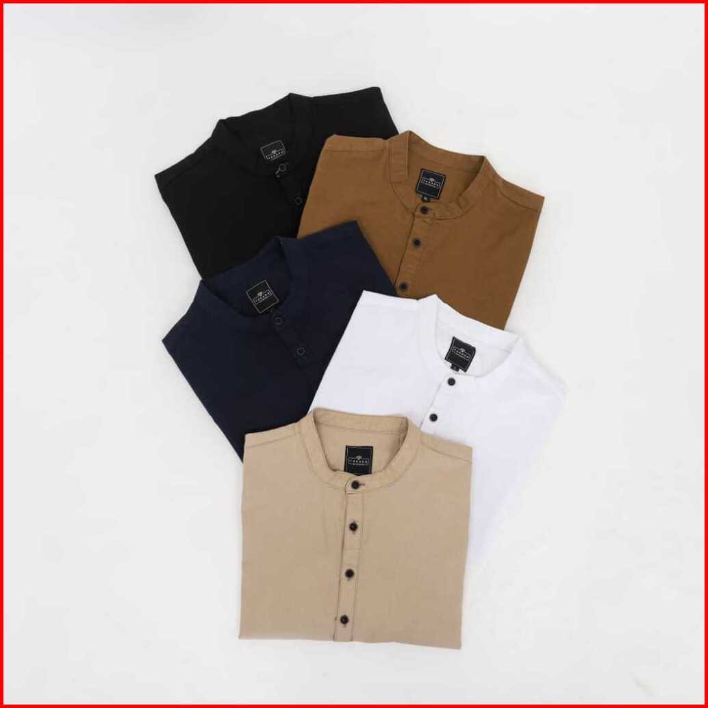 Kemeja Koko Pria Lengan Pendek Katun Linen Premium - Baju Koko Linen Basic Polos - Kemeja Koko Lengan Panjang - Baju Kok