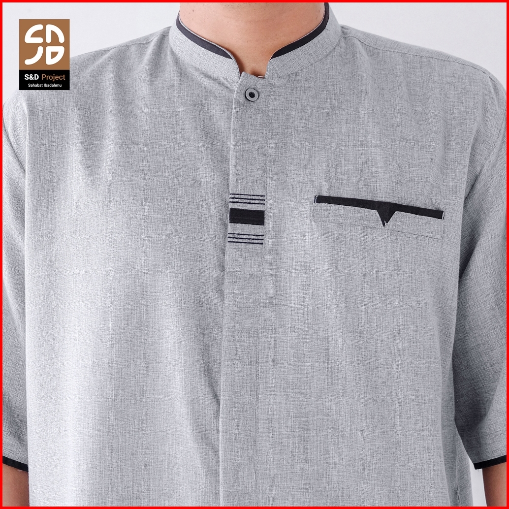 S D Project Baju Koko Katun Madinah Polos Lengan Pendek Ukuran M L Xl 2xl 3xl 4xl - Warna Abu Muda