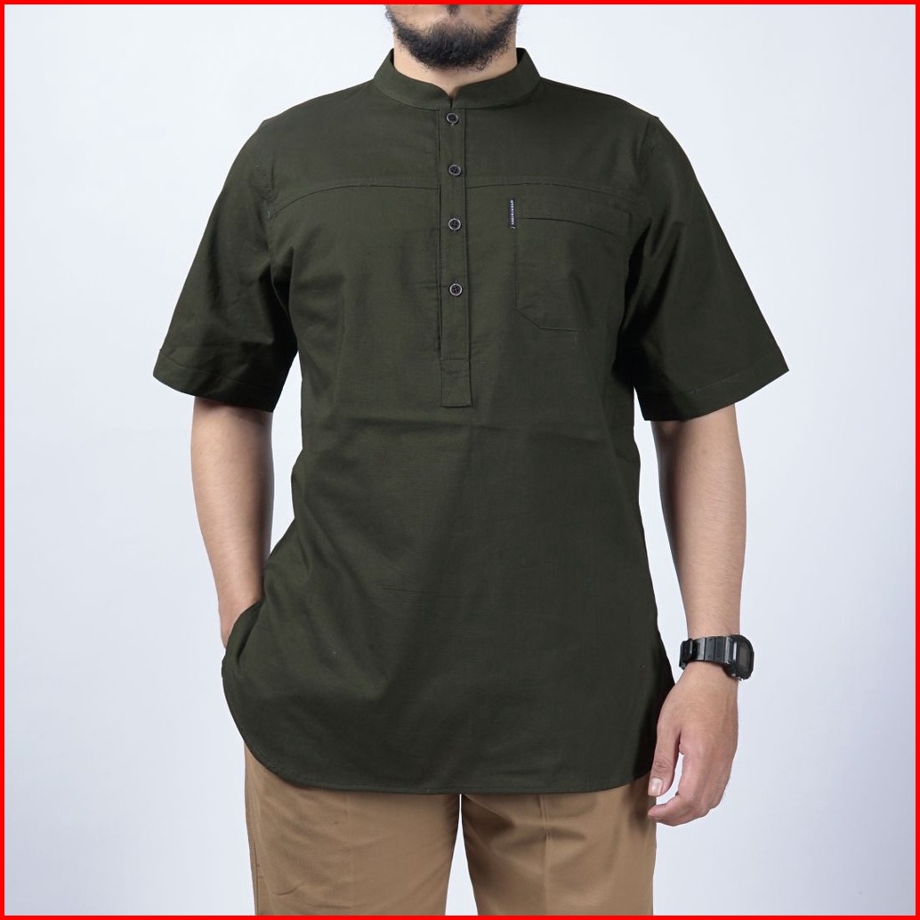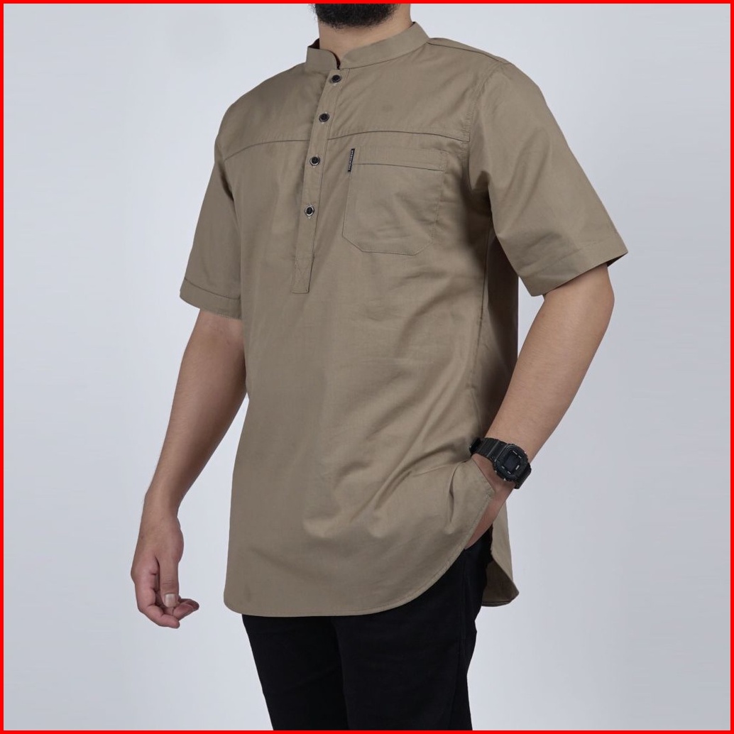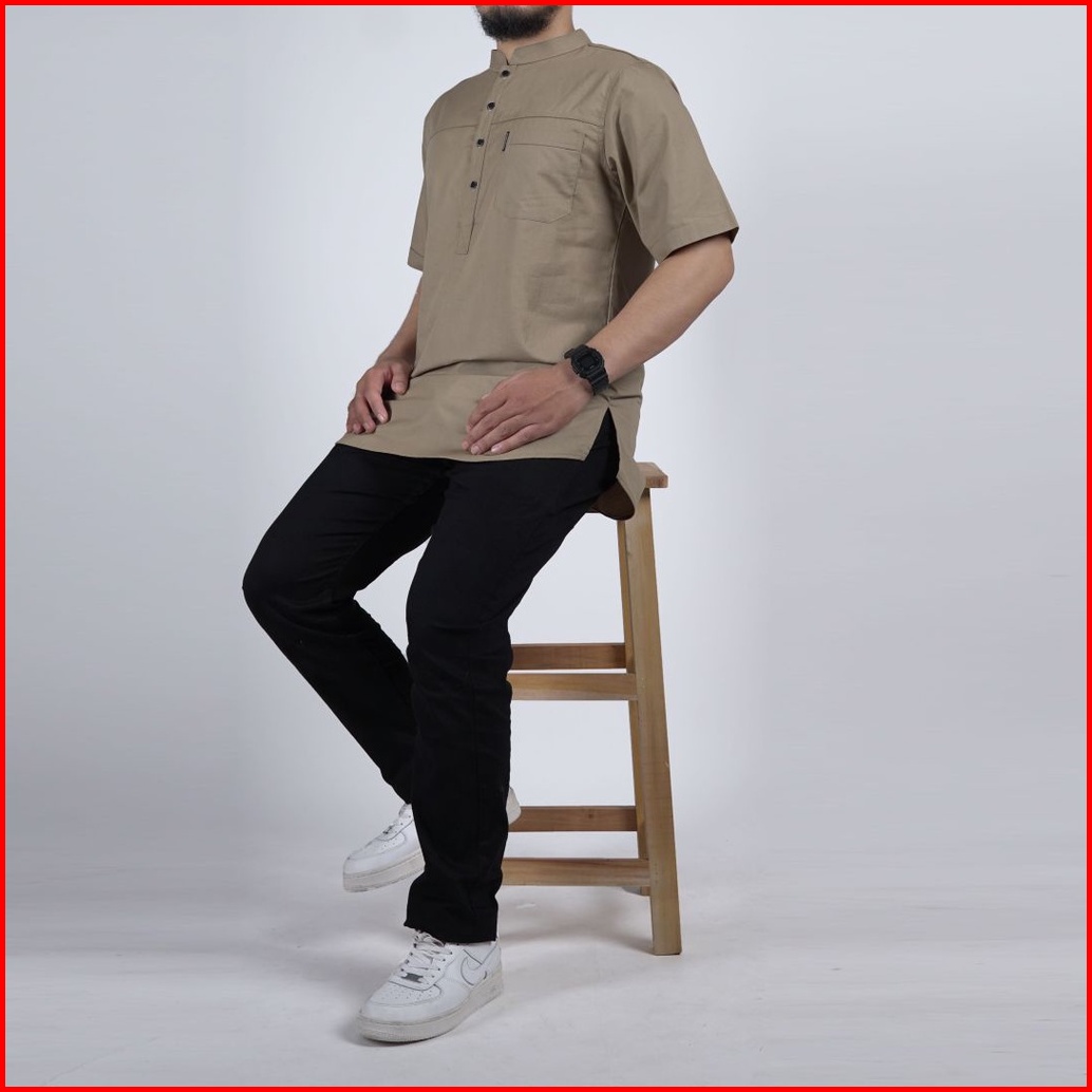 Khoirummah Kurta Hamzah Dewasa Baju Muslim Pria Dewasa Koko Kurta Polos Lengan 3 4 Cream