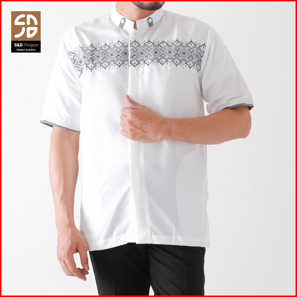 S D Project Baju Koko Polikatun Bordir Lengan Pendek S M L Xl 2xl 3xl 4xl - Seri 33 Putih Tulang