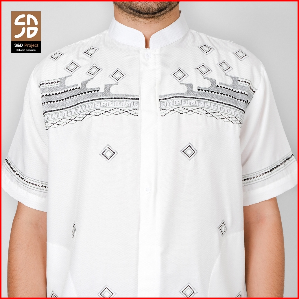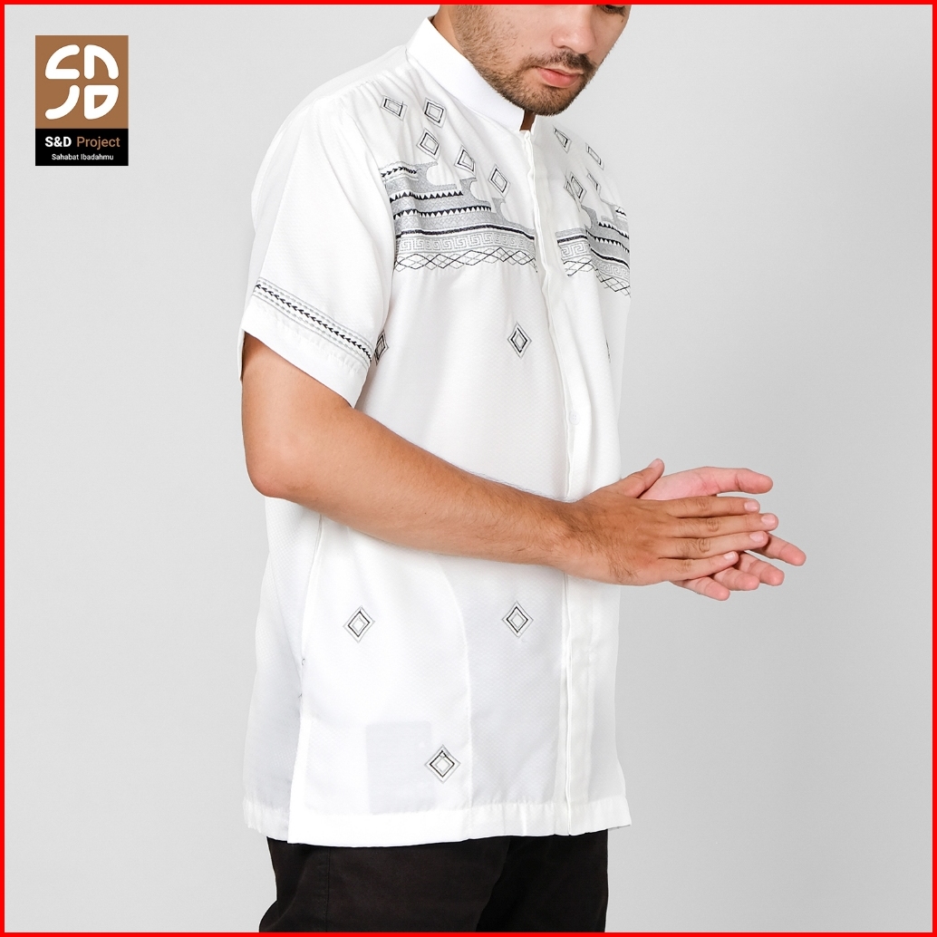 S D Project Baju Kemeja Koko Bahan Polikatun Bordir Jumbo Lengan Pendek Ukuran S M L Xl Xxl 3xl 4xl - Putih Tulang