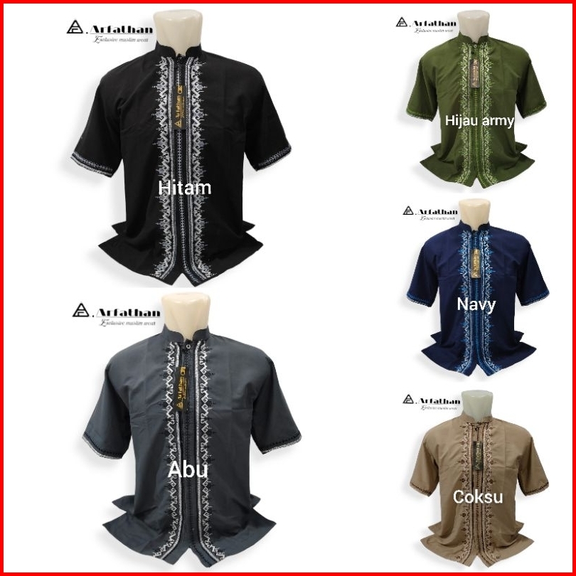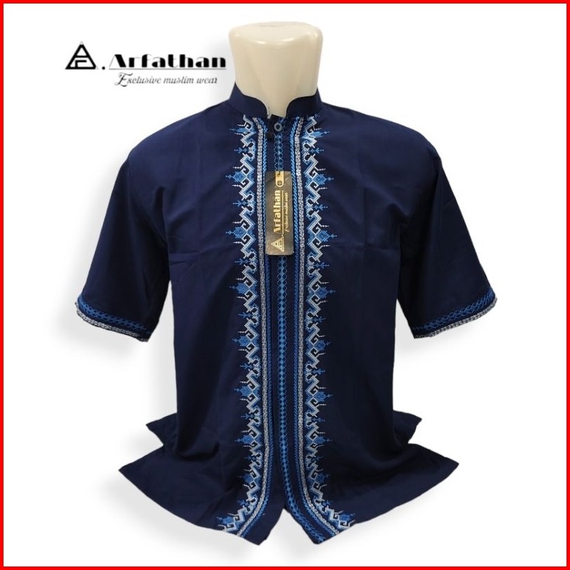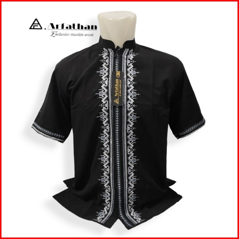 Baju Koko Pria Lengan Pendek Bordir Salur Terbaru Kekinian Arfathan Arf113