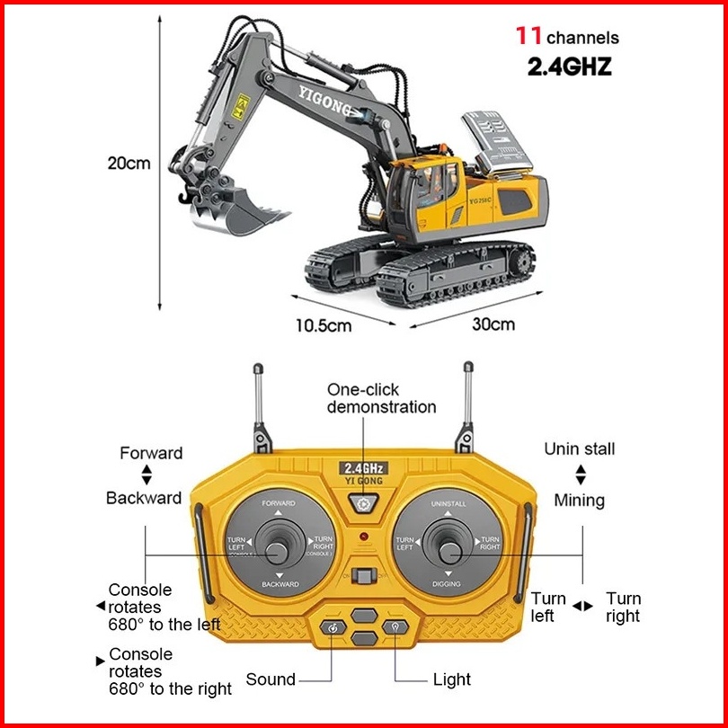 2.4g Excavator Remote Control 11 Channel Diecast Model Rc Crawler Wheel Loader Excavator Mainan Anak
