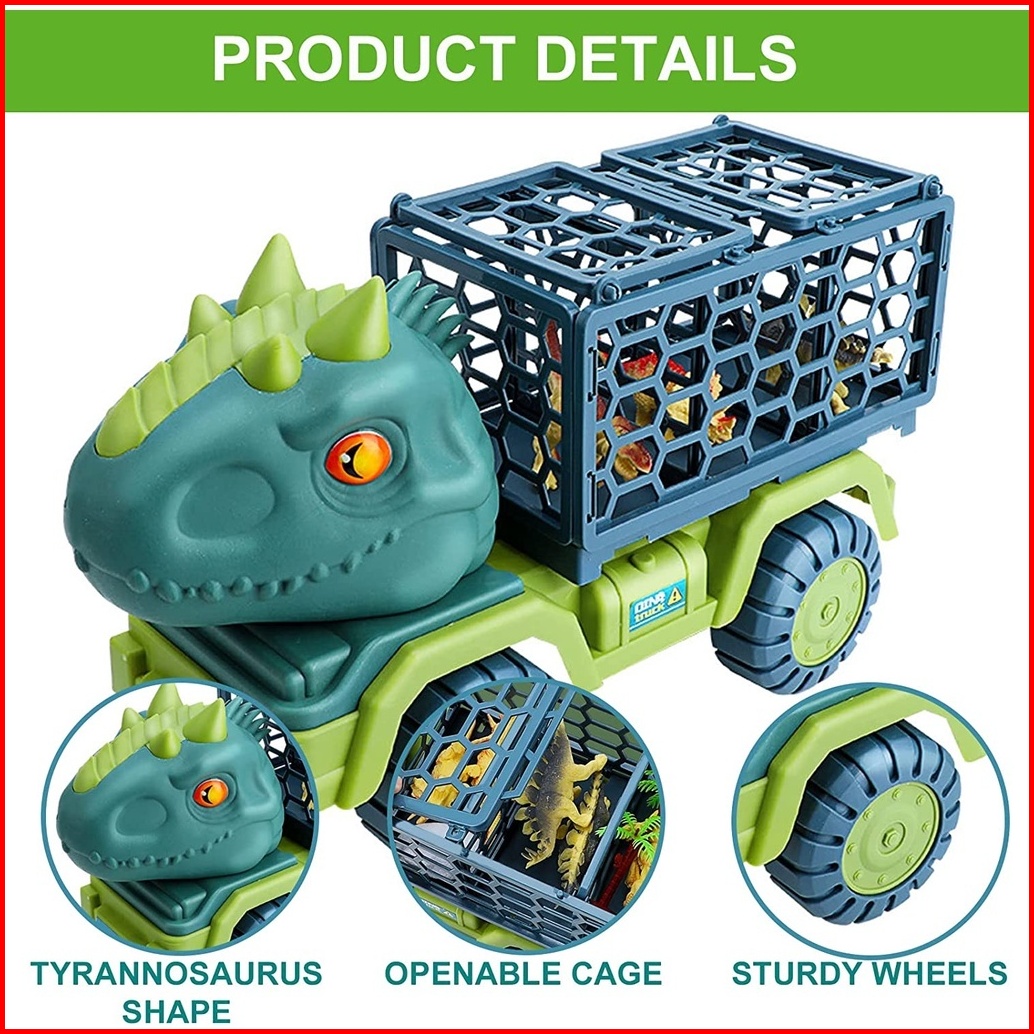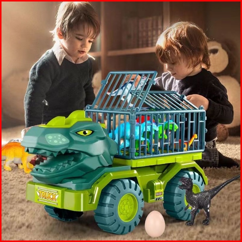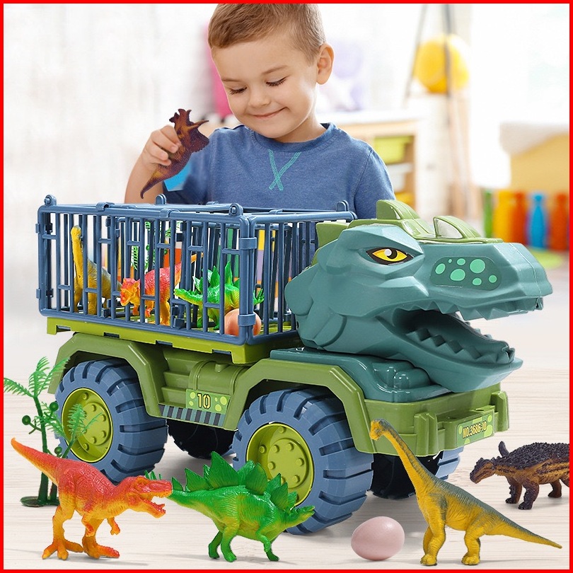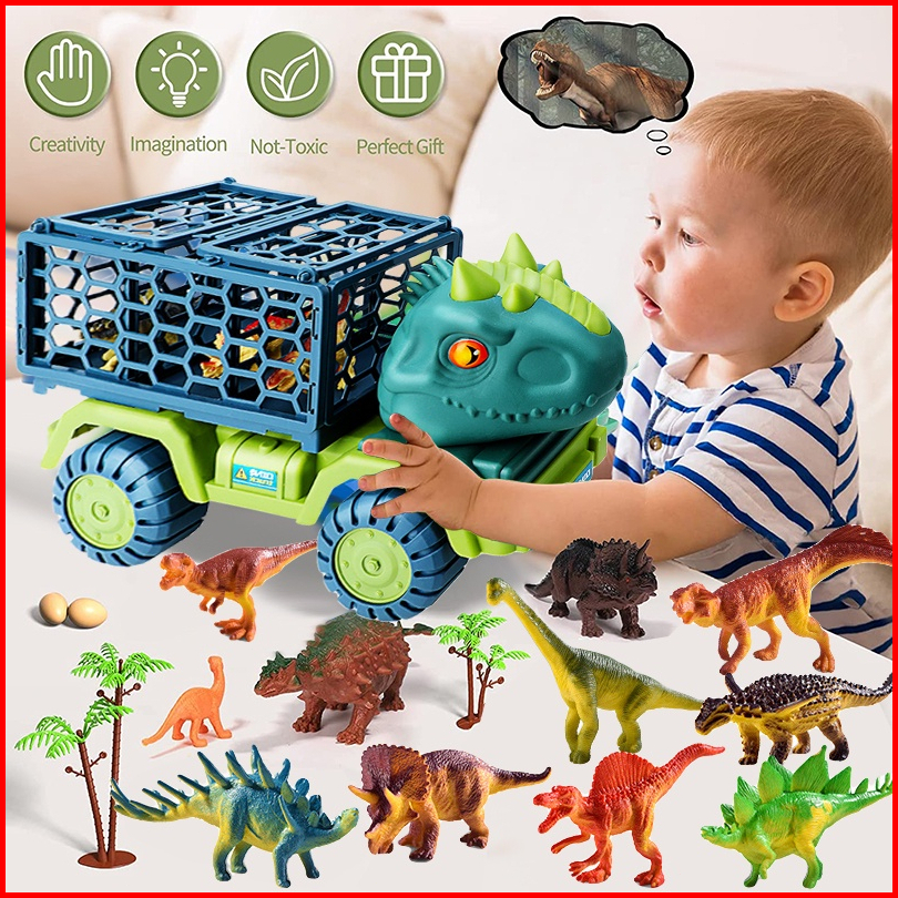 3 15pcs Dinosaurus Mobil Truck Mainan Anak Laki Laki Dinosaurus Besar Inersia Transporter Mainan Anak-anak Set