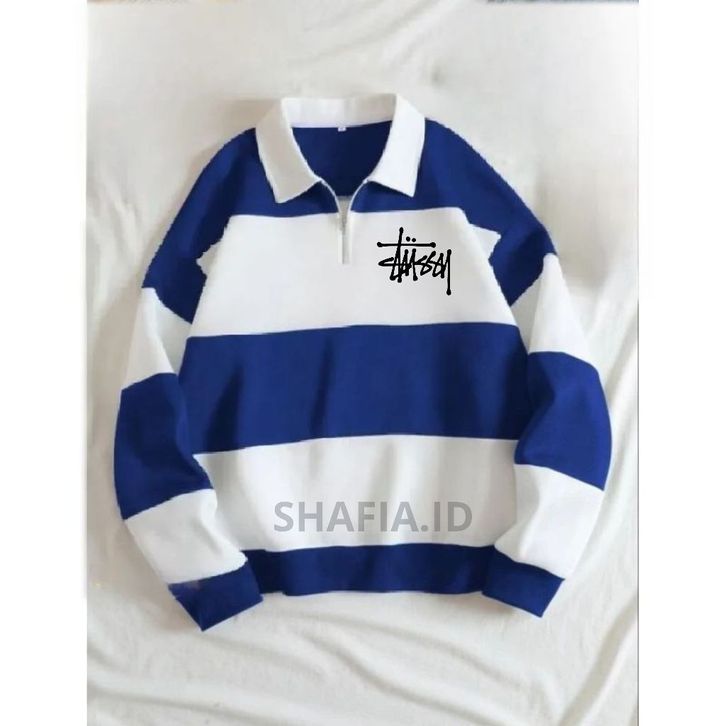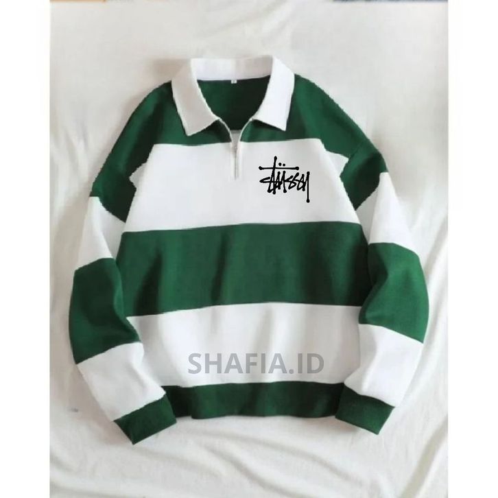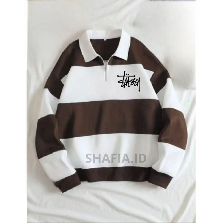 Sweater Salur Kombinasi Sweater Kerah Resleting Pria Wanita Kasual Pria Bahan Fleece Lembut Berkualitas Premium Nyaman