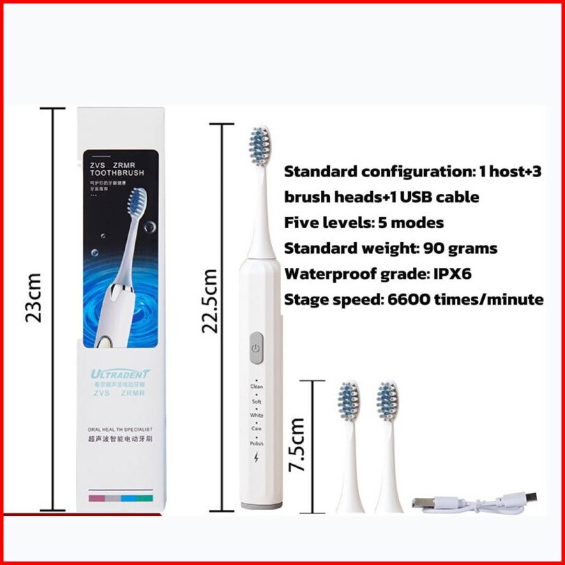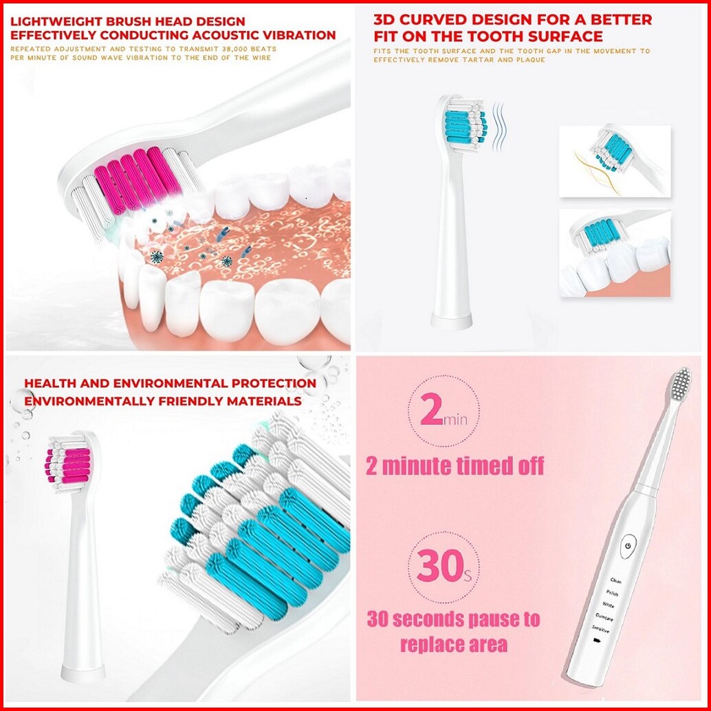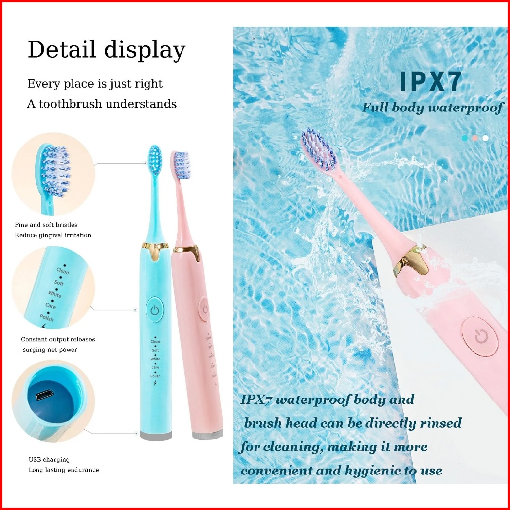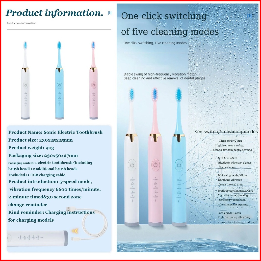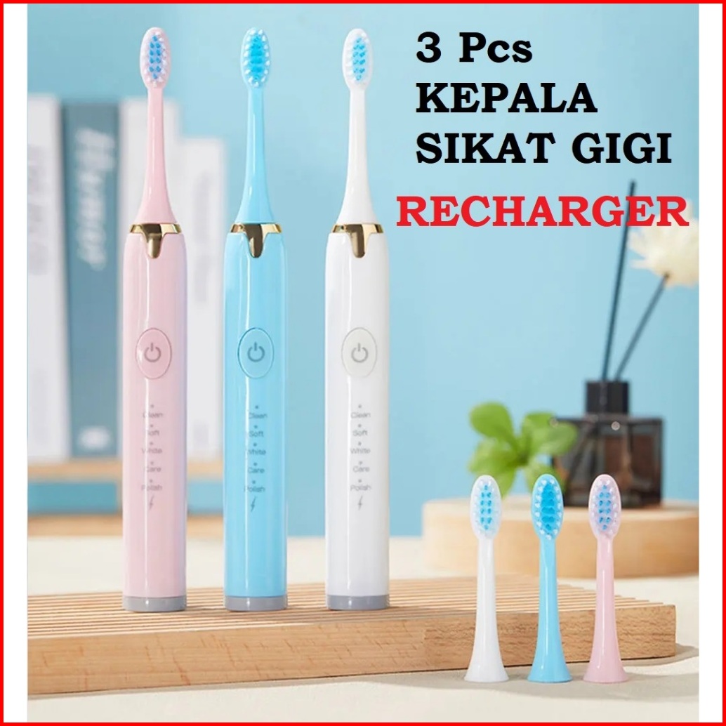 Recharger Sikat Gigi Elektrik 5 Mode Getaran Electric Toothbrush 5 Modes Vibration Washable Ori