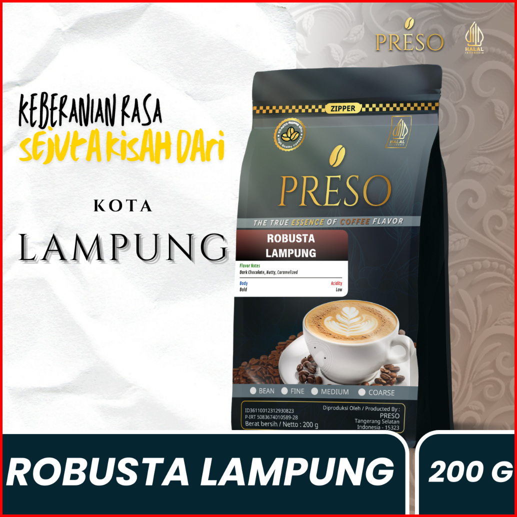 Preso Kopi Robusta Lampung 200gr Biji Bubuk Coffee Beans Espresso Roast Fresh