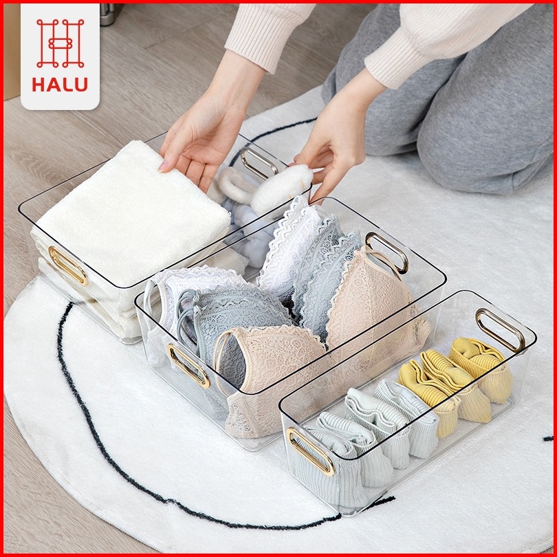 Halu Kotak Penyimpanan Barang Kontainer Make Up Skincare Acrylic Rak Penyimpanan Pakain Dalam Makanan Storage Box Organi