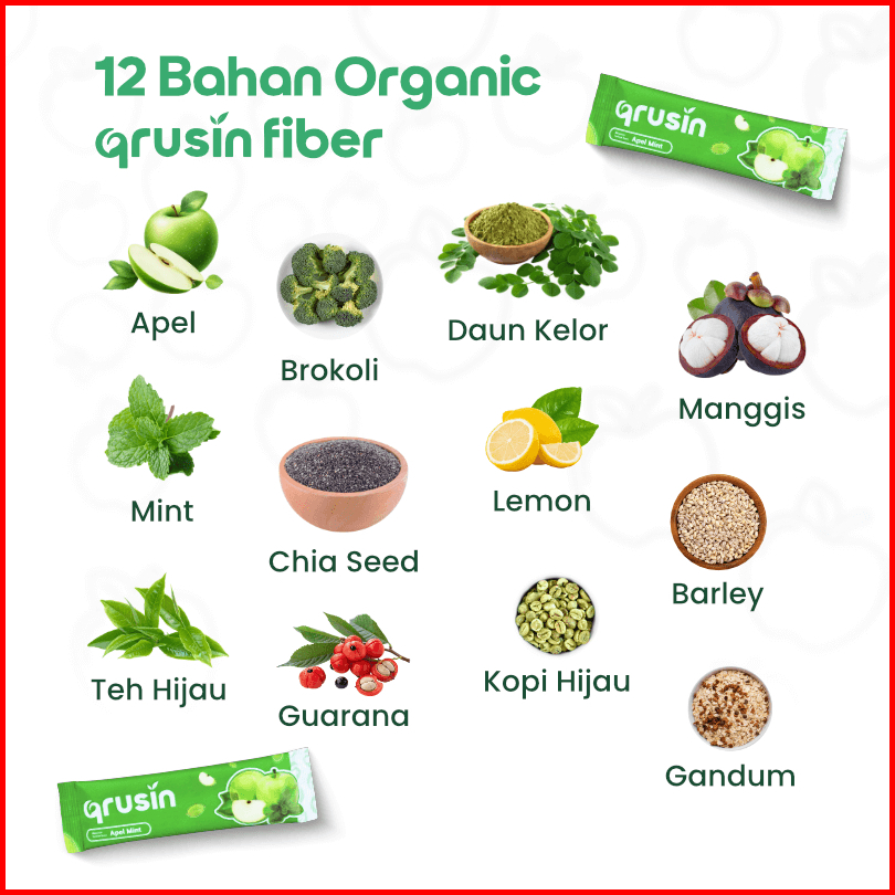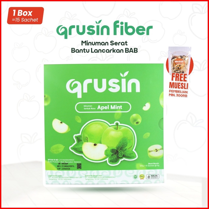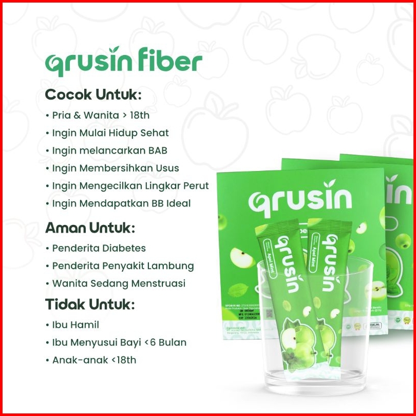 Qrusin Fiber Minuman Serat Suplemen Diet Detox Pelangsing Penurun Berat Badan 1 Box 15 Sachet