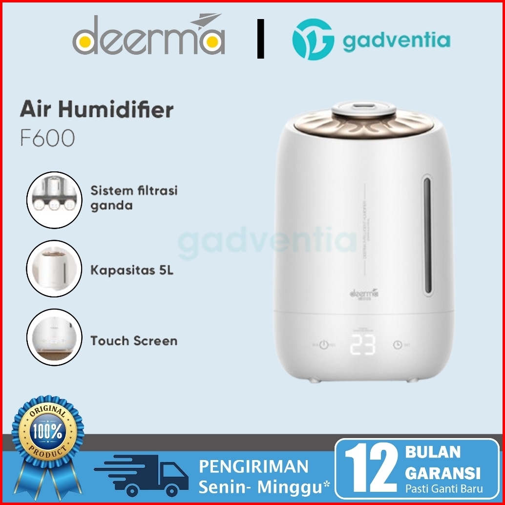 Deerma F600 Air Humidifier Ultrasonic 5l Touch Screen Pelembab Udara Ruangan Kantor Kamar Oil Aromaterapi
