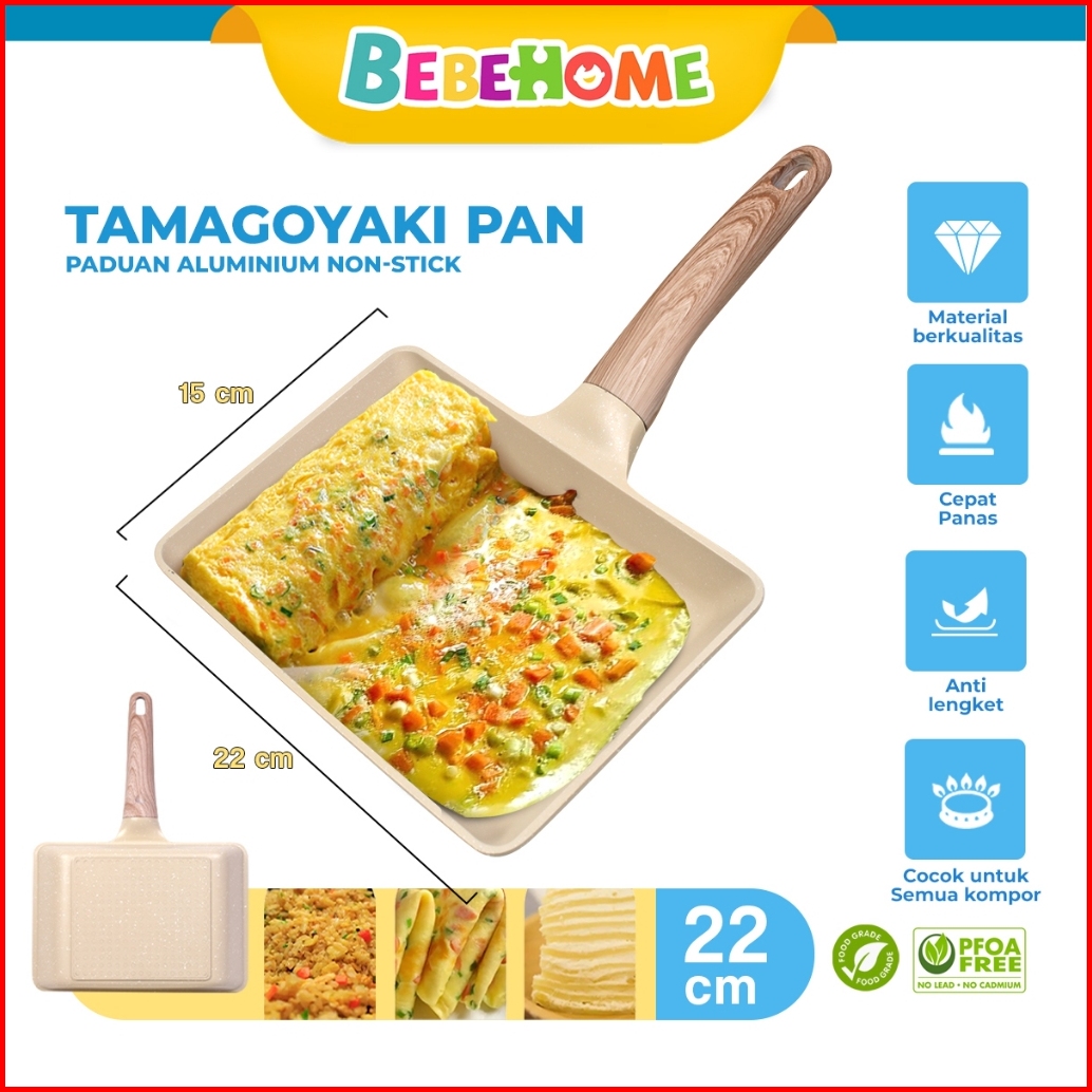 Bebehome X Tifale White Granite Tamagoyaki Pan Penggorengan Telur Anti Lengket Omelette Anti Lengket 18cm