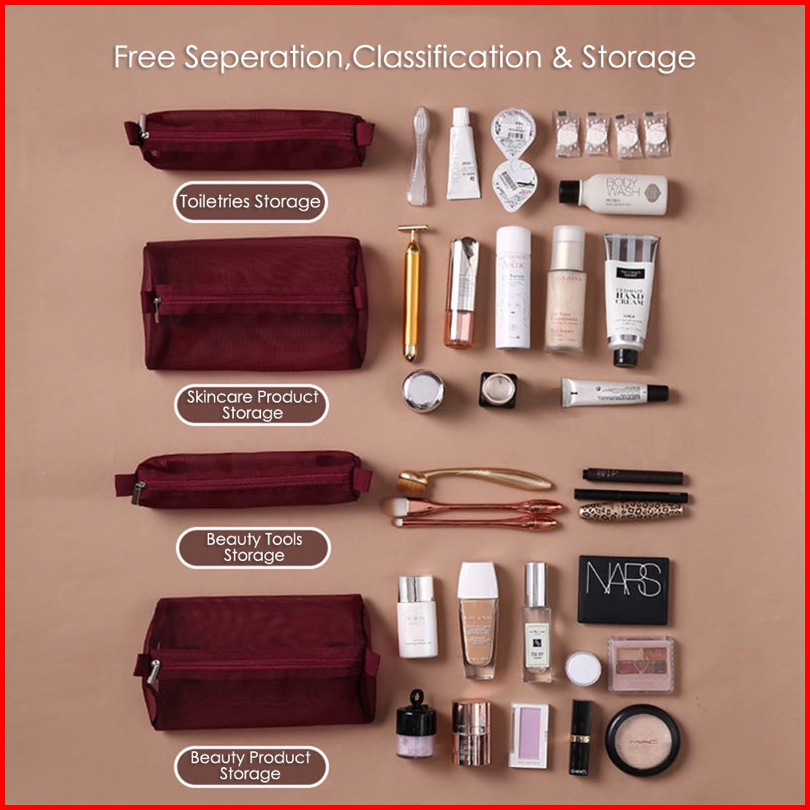 Minifridge Yoel Bag 4 In 1 Tas Kosmetik Pouch 4pcs Makeup Travel Tas Portable Make Up Tas Kosmetik Sekat 4 Pcs Wanita Tr
