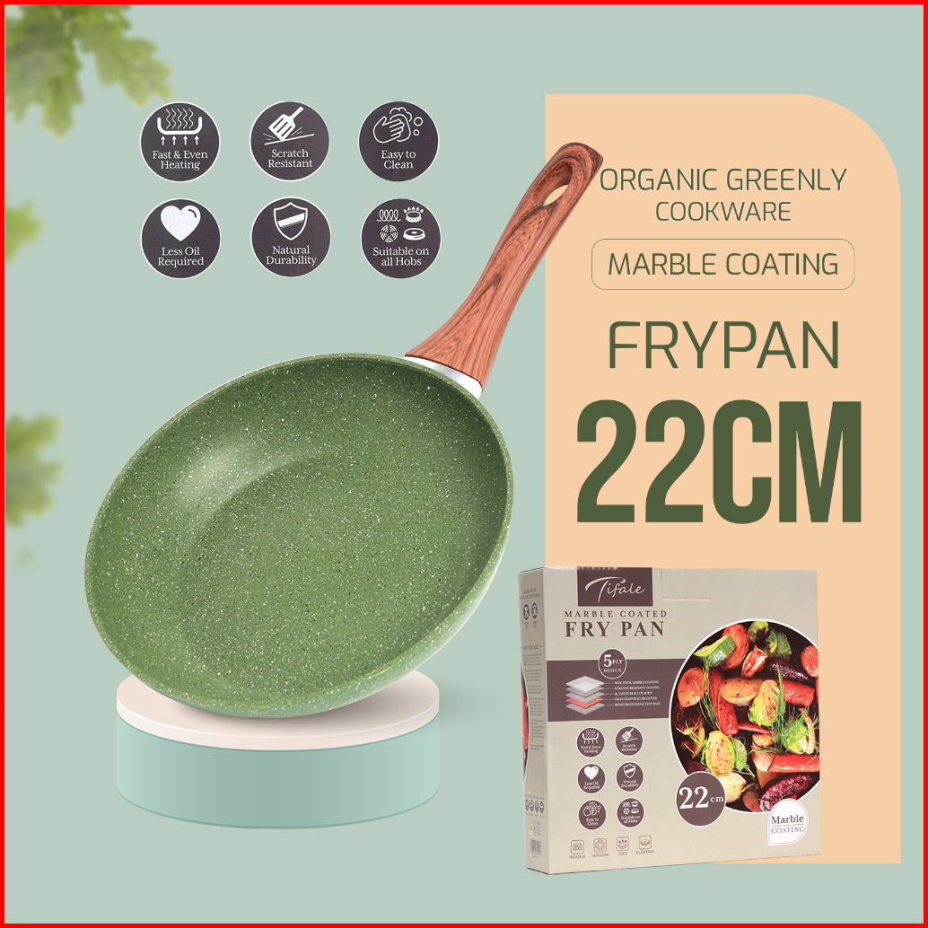 Tifale By Hongzhuo Organic Greenly Cookware Fry Pan 22cm Marble Coated Anti Lengket Wok Pan