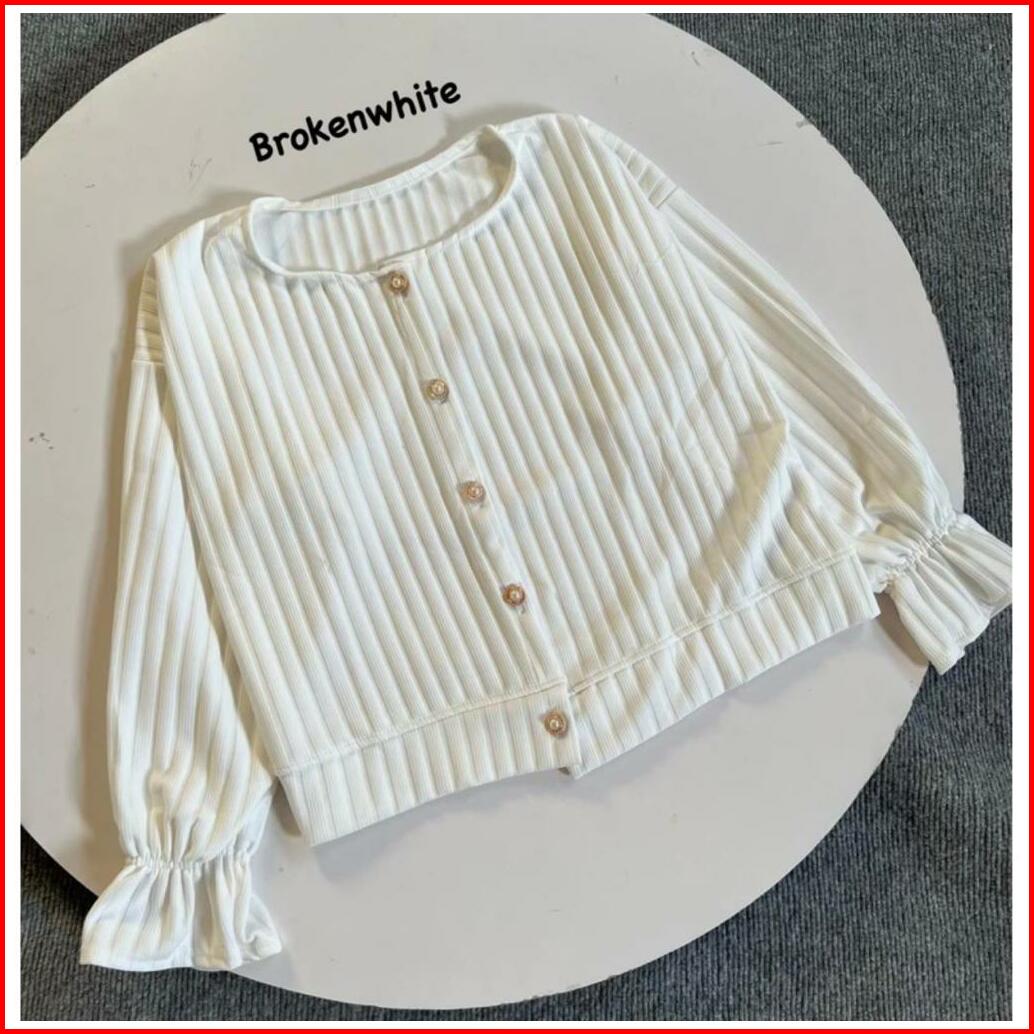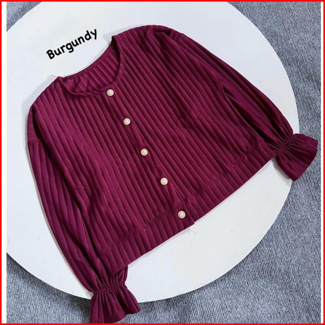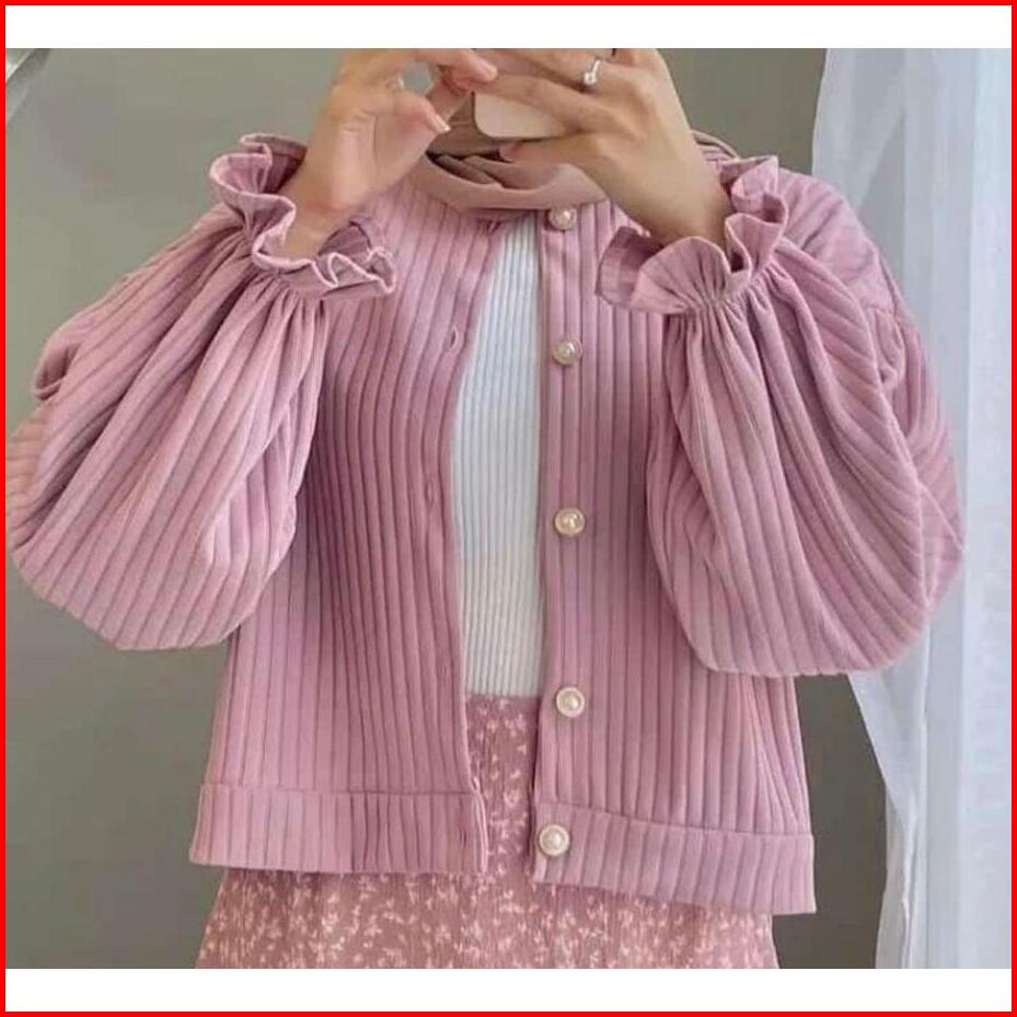 Cardigan Crop Top Hornet Kancing Lengan Panjang Kerut Balon Wanita Knit Kardigan