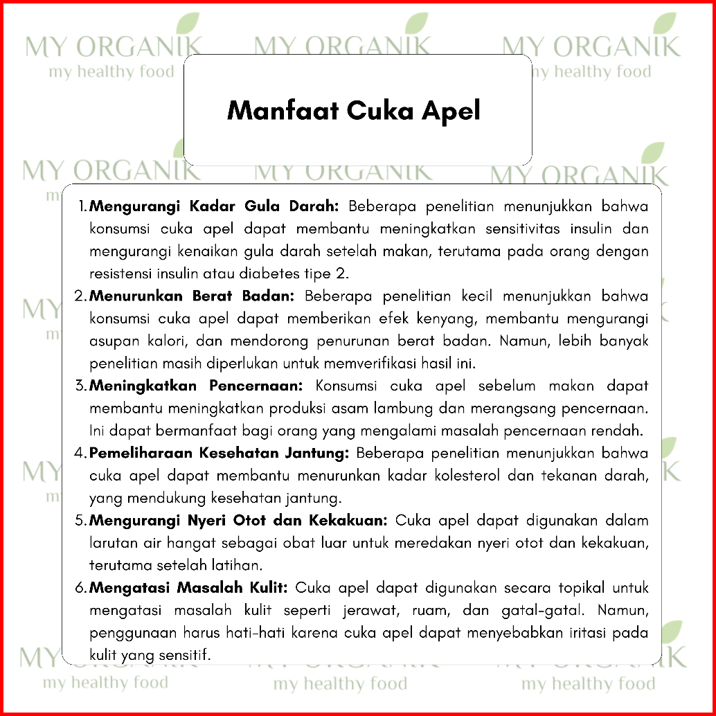 My Organik - Cuka Apel Murni Asli Diet Detoks Kesehatan Tubuh Dan Wajah Sari Apel Premium 500ml