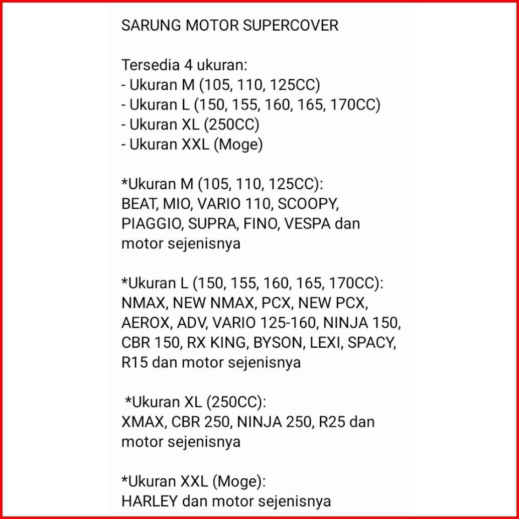 M (105,110,125CC), L (150 s/d 170CC), XL (250CC), XXL (MOGE)