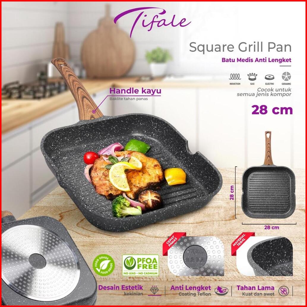 Tifale Frypan Grillpan 28cm Black Granite Granit Hitam Putih Anti Lengket Peralatan Masak Dapur Kitchenware Aluminium Si