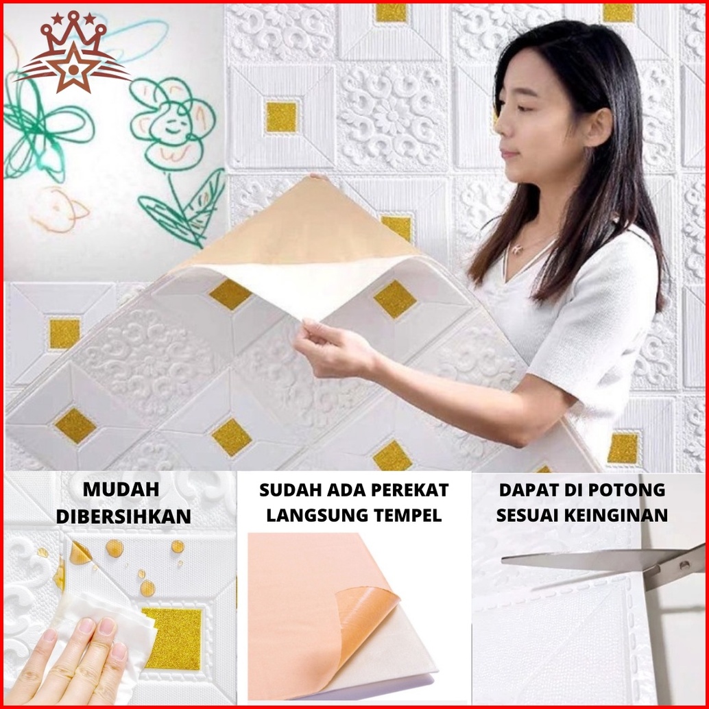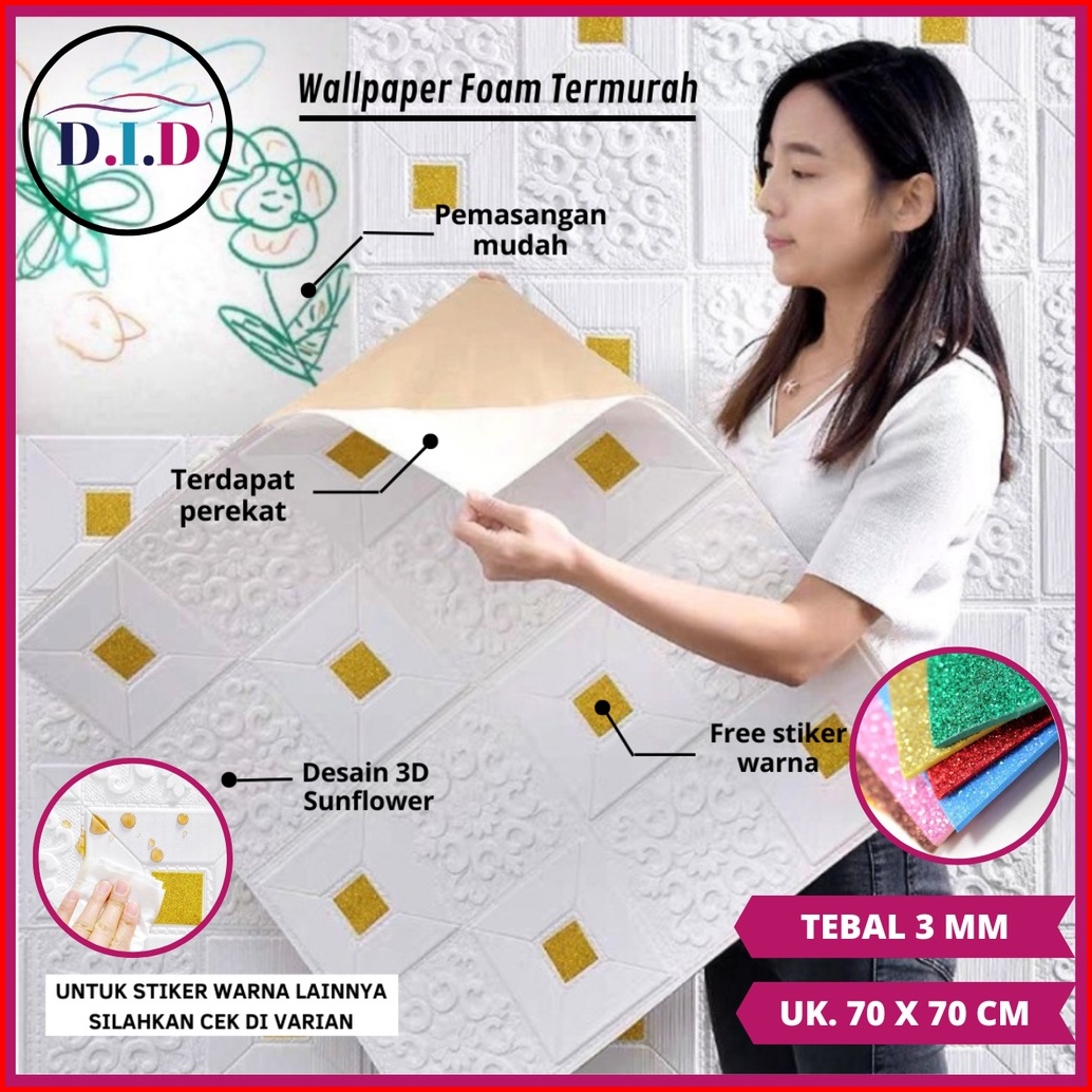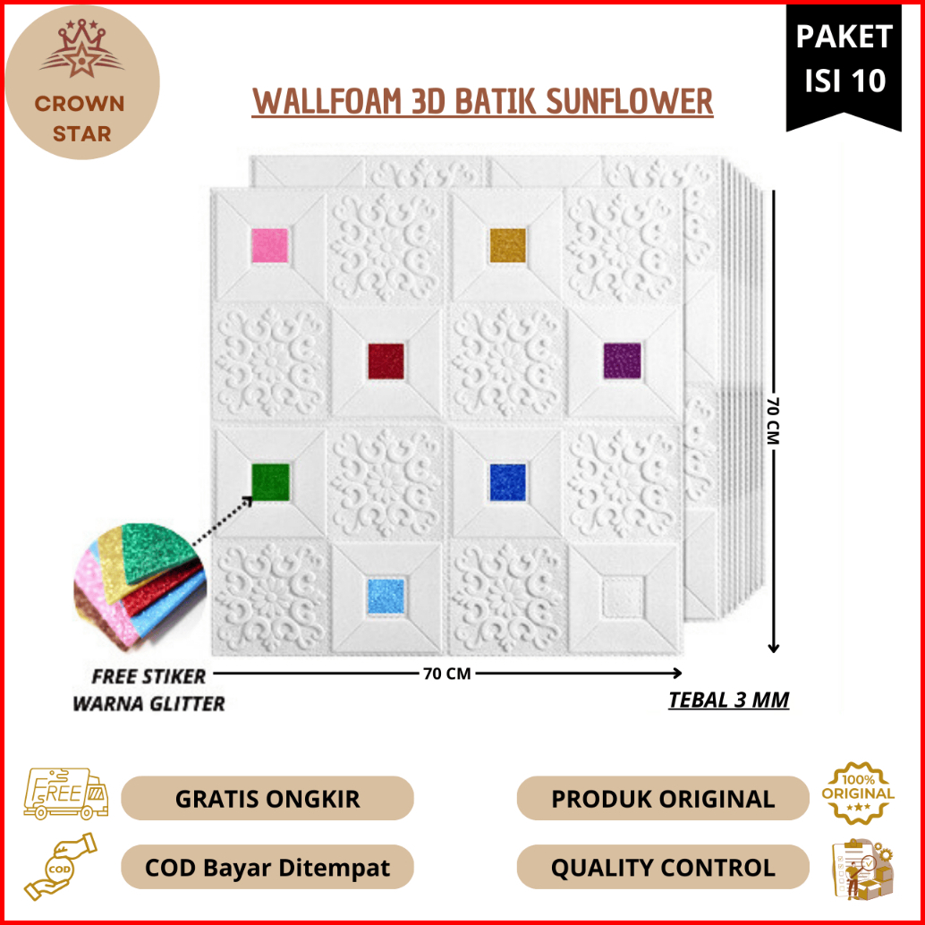Crown Star - Paket 10 Pc Wallpaper 3d Foam Batik 70 X 70 Cm Tebal 3mm Sunflower Free Sticker Warna