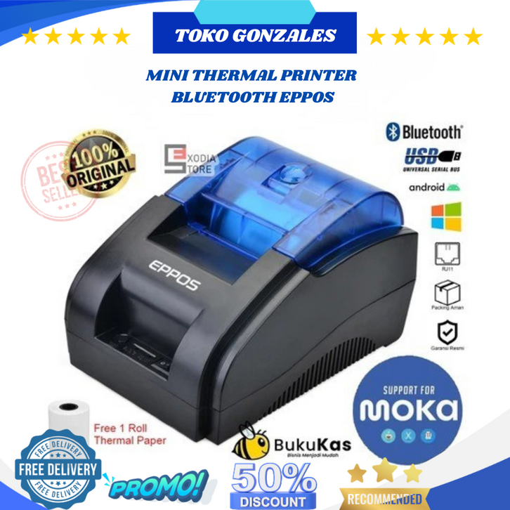 mesin cetak resi Original EPPOS EP-RPP02 EP58M Mini Thermal Printer Bluetooth 58mm Support Mokapos, BukuKas dan l