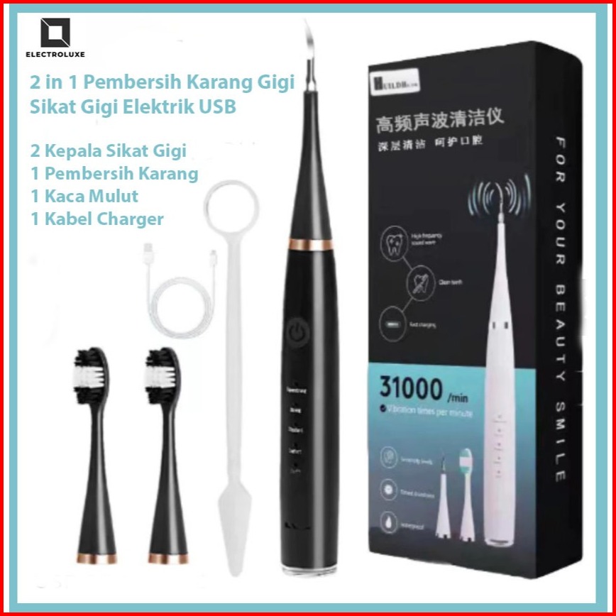 2in1 Smart Pembersih Karang Gigi Plak Sikat Gigi Electric Dental Scaling - Charge Usb Rechargeable